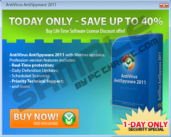 AntiVirus AntiSpyware 2011 Fake AlertsAntiVirus AntiSpyware 2011 is a rogue anti-spyware application which is a genuine computer threat. This type of malware application pretends to be a genuine computer security tool in order to deceive you that there is something wrong with your computer. If you start believing in the notifications that this rogue displays, you will start to panic and consequently will easily follow AntiVirus AntiSpyware 2011's instructions. By doing so, you will be ripped off, and your computer will be terribly damaged. In order to avoid such outcome, you have IGNORE every single one of these fake alerts: AntiVirus AntiSpyware 2011