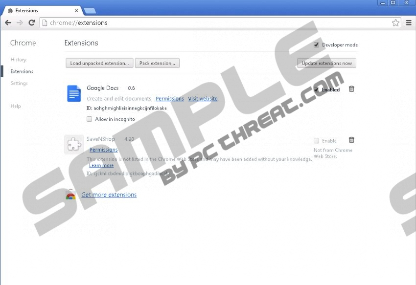 SaveNShopAll computer users should remove SaveNShop from their operating systems. The seemingly harmless extension which can be installed onto Internet Explorer, Mozilla Firefox and Google Chrome browsers is not trustworthy. In fact, the longer you keep the application running on the browsers, the more vulnerable your virtual security will become, which is why we suggest having the extension deleted as soon as possible. If you want to learn more about the removal or the application itself, you can read the report which has been created when analyzing the adware. SaveNShop is often identified as a name randomizer. This is a term used to describe those applications which can use different versions of their own name to evade the detection by active automatic malware removal software. Needless to say, if existing security tools do not locate and delete SaveNShop, there is no doubt that it is time for you to update the security of the operating system. If you do not, Deal2Dealit, AdBlockNWatch, PrinceCoupon, and other name randomizers could slither in soon enough. If you have found these programs already – rush to remove them ASAP. It is important to recognize that SaveNShop usually enters the operating system bundled with third-party applications. Installrex is by far the most common installer used for the distribution of this adware. Unfortunately, it may carry bundled installers, and some of them may be silent. This means that once you launch the installers, usually represented on P2P file-sharing sites, you may acquire undesirable programs. Whether these additionally installed applications are dangerous or not, you should remove them without any hesitation because they could turn out to be unreliable as well. The main task for SaveNShop is to enable third parties to present online advertisements. If you do not delete the application from the PC, sooner or later you will discover the flooding pop-up and banner offers. Some of them may show up strategically on the online shopping sites, to convince you that the application acts as a shopping assistant. Regardless of the presented offers and the sites they are displayed on, we do not recommend clicking on any ads because they could be unreliable. The best thing to do in this situation is delete SaveNShop from the PC. Even though most computer users choose to complete the manual SaveNShop removal (see instructions below), malware researchers remind that additional threats may exist alongside the adware. Use trustworthy security tools to have all existing infections deleted automatically and the operating system protected against other schemers’ attacks. SaveNShop RemovalRemove from Windows 8: