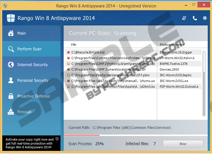 Rango Win 8 Antivirus 2014You might think that Rango Win 8 Antivirus 2014 is a useful security application; however, the truth is that it is fake and it will not do anything beneficial for you. As the researchers at pcthreat.com have found out, Rango Win 8 Antivirus 2014 just seeks to convince computer users that it is a powerful security tool. Thus, it is not surprising that it will try to make you believe that your computer contains a number of infections. As it can be seen, the publisher of Rango Win 8 Antivirus 2014 seeks to extort money from you. Even though it will try to convince you that you need to buy the license, you should ignore all the warnings and delete Rango Win 8 Antivirus 2014 as soon as possible. It is very important to do that if you want to use your computer without any obstacles. Rango Win 8 Antivirus 2014 belongs to Braviax/FakeRean family of infections and it does not differ from previously published rogue-antispyware. It means that it looks completely decent and will even perform a system scan in order to look more realistic. In addition, you will see a list of infections. Do not worry; they do not exist on your computer, which means that there is no need to upgrade Rango Win 8 Antivirus 2014 in order to delete them. It is not advisable to invest money in such fake tools as Rango Win 8 Antivirus 2014 because they will not do anything beneficial. The security experts at pcthreat.com have tested Rango Win 8 Antivirus 2014 and found out that it will appear on those computers with Windows 8 OS only. However, other computer users might encounter it as well; however, it will adapt its name to the version of the OS. All the versions of this rogue anti-spyware act in the same manner: they will block all .exe files, display various warnings and notifications as well as connect to the Internet without permission. It is also very likely that Rango Win 8 Antivirus 2014 will slow down older machines. You should be very cautious in order not to allow similar infections enter your system in the future. In our opinion, the best way to do that is to install a security tool on the system. As Rango Win 8 Antivirus 2014 blocks Task Manager, Registry Editor, and all the executable files, the manual removal of this infection is very difficult. Therefore, we recommend deleting it automatically. Our instructions (see below) will help you to download the trustworthy security software. You will just have to launch the scanner and then click the Fix Threats button and Rango Win 8 Antivirus 2014 will disappear from your system. How to get rid of Rango Win 8 Antivirus 2014