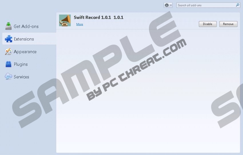 Swift RecordWe have identified Swift Record as an adware app, and thus we recommend that you remove it as soon as you notice it on your computer. Developed by SuperWeb LLC, Swift Record is a completely useless browser extension which promotes third-party content onto Internet browser. Though Swift is compatible with Internet Explorer and Mozilla Firefox, the newer versions of Google Chrome might block this application; hence, this is the first sign that you should delete Swift Record right now. Also, you should consider the method it employs to enter to your system; i.e., it is distributed the same way unwanted or dangerous programs reach target computers. As soon as it enters your computer, Swift Record does everything an advertisement-supported apps supposed to do: It starts showing advertisements. It might pop up coupon and discount related information when you go to such online retailers as Ebay.com, BestBuy.com, or other. Swift Record will serve you ads even if you do not visit the said sites; i.e., this app might display the commercial content everywhere. The advertisements might be tagged by “Ads by Swift Record” or “Provided by Swift Record,” or similar phrases; therefore, if you already noticed the promoted third-party links, we suggest that you do not delay and remove Swift Record from your machine immediately. You should delete this application and for other important reasons: The promoted third-party links might reroute you to unsafe sites. Here, you might accidentally authorize the access of such threats as Trojans, worms, rogue software, ransomware, etc. The moment malware gets onto your system, it can compromise your machine in many unpredictable ways; thus, removing Swift Record should be on your priority list. If you do not want to deal with Swift Record in the first place, you should avoid downloading software bundles from suspicious websites (for example, pirate sites). When you are installing torrent clients, media players, PDF readers, download managers, or other applications or utilities, there is a possibility that the installer (or the downloader) might deploy additional components onto your machine as well. This is a common way for risky content to find its way to computers. Common sense and vigilance are the most trusted preventative measures; all you have to do opt for more customizable installation process (Custom/Advanced) and uncheck suspicious applications. Even if Swift Record has already reached your computer, it might still not be too late to remove it. As with Pine Tree, Air Globe, Special Box and other Superweb applications, you can terminate Swift Record completely by deleting it from Control Panel. To make sure your computer has not been infected with additional threats, which sometimes are hard to detect, install legitimate antimalware software. The tool will work as a defensive wall against all the threats that might try to reach your system. How to remove Swift Record from your computerWindows 8 & 8.1:
