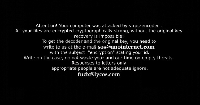 Sos@anointernet.comSos@anointernet.com is a malicious computer infection classified as ransomware. It means that when the program enters your computer as a Trojan, it holds your computer (or your files, in this case) hostage until you pay a pre-determined ransom fee. Needless to say, it is important to remove Sos@anointernet.com from the system as soon as possible, and the best way to achieve that is to invest in a legitimate computer security application. For any further questions, please leave us a comment below this description and our team will reply as soon as possible. It does not require an extensive analysis to see that Sos@anointernet.com is a direct clone of Fud@india.com. Both ransomware infections have been created by the same criminals who intend to steal your money. You most probably got infected with Sos@anointernet.com when you opened a spam email attachment. However, spam email messages are not the only method of distribution employed by this infection. Our research shows that this ransomware program might also be distributed via exploit kits. Exploit kits are one of the most prevalent web threats, and they can be embedded in various websites that contain vulnerable software (like flash plug-ins). The pre-written exploit code in the exploit kits targets users that are running outdated software applications. Therefore, all of your software should be updated regularly if you want to avoid Sos@anointernet.com and similar malware infections. Nevertheless, if Sos@anointernet.com has already managed to enter your computer, do not panic because that will not help anyone. Technically, Sos@anointernet.com is a very annoying and disturbing infection because right when it enters your computer, it encrypts the most commonly used file extensions, thus making it impossible for you to access your MS Word documents, videos, photos, Excel documents, and so on. Once the encryption is complete, the files are renamed as [filename].id[ID]_sos@anointernet.com. This ID on the file is the ID users are told to send with their email message via Sos@anointernet.com. The notification that tells you to contact the people behind this infection is worded as follows: