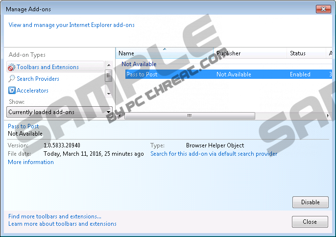 Pass to PostPass to Post might call itself the best tool for surfing the web, but you should realize sooner or later that it is completely worthless. The first sign that this program is potentially unreliable is its own claims to offer the best services. If it truly was the best tool around, you would have heard about it by now, and it would not be introduced to you by unfamiliar installers or via some obscure website. Unfortunately, many computer users do not take this into consideration, and they pay attention to the alleged benefits brought by this program rather than the risks associated with it. Needless to say, if you are this careless, you might invite much more malicious threats without even knowing it. Although it might not be the worst of malware, we suggest removing Pass to Post from your operating system as well, and you can learn why this is important by reading this report. The category that we have placed Pass to Post in is adware. This term stands for “advertising-supported software,” and, as you must understand, this software can display advertisements. Unfortunately, we have found that injecting ads is the main service of this suspicious program, which makes it useless for you. Sure, you might find some of the deals and offers shown attractive, but you have to think twice before you interact with them. These deals and offers might have been created by unreliable parties, and clicking on them could be risky. You would face the same issues if you downloaded Innovate Direct, Elements Peruse, Discovery App, and other advertising-supported programs created using Injekt. This engine could have been used by different parties, but all apps created using it look identical and work in the same ways. For example, all of them have official websites, such as passtopost.com, that do not provide installers. The fact that an official installer for Pass to Post does not exist raises a few questions. For one, how is this advertising-supported program distributed? As mentioned previously, it is most likely that this app will be provided to you by a third-party installer. Unfortunately, some third-party installers might spread this adware along with many other unreliable programs, which is why you have to be careful when downloading the software you are interested in; especially if you are using the services of unfamiliar software distributors. Because there is a possibility that you have downloaded this adware along with malware, we strongly advise installing a scanner to inspect your operating system. In case malware is detected, do not ignore it because your own virtual identity and the security of your Windows system could be jeopardized. If you are not sure you can handle the threats detected manually, implement a trusted anti-malware tool. The main reason you should delete Pass to Post from your operating system is to prevent being scammed. Unfortunately, the advertisements injected by this adware could serve malware creators and distributors, as well as schemers. The bad news is that this adware collects information about your virtual activity, which makes it easier to provide you with more attractive ads. As you can guess, attractive offers could be used to trick you into interacting with cyber criminals. If you want to avoid this, you should stay away from all ads, and you should eliminate the unreliable program responsible for injecting them. Note that additional ad-supported programs could be present on your operating system, which means that you might continue seeing ads even after you remove Pass to Post from your PC. A reliable malware scanner can help you figure this out. If you are looking for a challenge, we have one for you. Although it is possible to remove Pass to Post by uninstalling it via Control Panel, we think it is a good idea for you to follow the steps below. If you do, you will learn how to delete registry keys – if you do not know this already – and files that belong to this adware. Of course, if other threats are active, you might want to install an anti-malware tool to catch and eliminate them quickly. The longer malware stays on your computer, the more damage it can it do. If you need our advice about anything regarding this threat or the protection of your PC, contact us via the comments box below. Pass to Post Removal