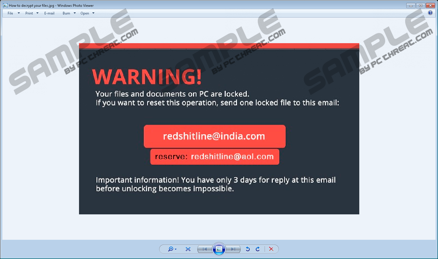 Redshitline RansomwareRedshitline Ransomware is a type of Trojan whose job is to encrypt important files on your computer and demand that you pay a ransom in return for the decryption key that only the people who control Redshitline can provide. Chances are, however, that you might not receive the key after you pay. Therefore, all you can do is remove this infection and try to restore your files from backups stored on other storage media, or what have you. In this article, we are going to discuss how this ransomware works, how it is disseminated, and, most importantly, how to delete it. First and foremost, we want to inform you that your computer probably became infected with this ransomware after you opened a malicious email attachment. The attachment can contain anything from a self-extracting file archive to Microsoft Word document with enabled macros to a simple executable file that drops Redshitline Ransomware’s payload which is then run automatically. You probably did not even notice that something was going on in the background, a mark of a ransomware made by professional hackers. However, when this infection springs into action everything becomes apparent. Redshitline Ransomware will scan your computer for certain file types, such as zip, 7z, rar, m4a, qt, 3g2, and so on. Furthermore, it will add its extension .IDB4500913.redshitline@india.com.xtbl to each encrypted file. Nevertheless, it will skip predetermined folders that contain essential files for running the operating system because it is not in the interest of its owners to make your computer unusable. This particular ransomware uses the RSA-2048 encryption algorithm. RSA is a cryptosystem that was used for secure data transmission, but for the last decade or so malware developers have used it to encrypt files to extort money. 2048 indicates the length of the encryption key. In this case, it is a 2048-bit key which is reasonably secure, and thus, extremely difficult to crack. To date we do not know of any third-party software that could decrypt the files once they have been encrypted by Redshitline Ransomware. Once the encryption process is complete, the ransomware will change your computer’s desktop wallpaper and drop a text file named How to decrypt your files.txt in every folder that contains an encrypted file. This text file contains instructions on what to do to get the decryption key. This ransomware’s developers try to pressure you to take hasty steps by claiming that if you do not reply to the provided email address (Redshitline@india.com or Redshitline@aol.com) it will be too late, and you will not be able to decrypt the files. This is probably true, but we urge you not to rush in and pay the ransom because it is more than likely that you will not receive the decryption key. Now let us delve deeper into the technical information regarding Redshitline Ransomware. We have tested this ransomware’s sample and found that its point of execution is located at HKEY_LOCAL_MACHINE\SOFTWARE\Microsoft\Windows\CurrentVersion\Run. This ransomware’s subkey name is random (e.g. rvpjmcnd) but its Value Data is C:\Windows\System32\5aba34027d2db0e1cffda281021c61903cac21f3759fc045278480204138b647.exe. Note that the random name of the executable may also differ. Furthermore, the aforementioned directory is where this ransomware is located. So now that you know what this ransomware can do and where it is located, it is high time to move to its removal process. As dangerous as Redshitline Ransomware can be, you can get rid of it without having to use antimalware software. Our test has shown that you can delete its executable file at C:\Windows\System32 and its point of execution registry key at HKEY_LOCAL_MACHINE\SOFTWARE\Microsoft\Windows\CurrentVersion\Run. So feel free to consult the instructions below. Alternatively, you can use our recommended antimalware application called SpyHunter. In closing, we want again want to stress that if you pay the ransom, you may still not get your decryption key, so we suggest not taking this risk. How to remove this ransomware