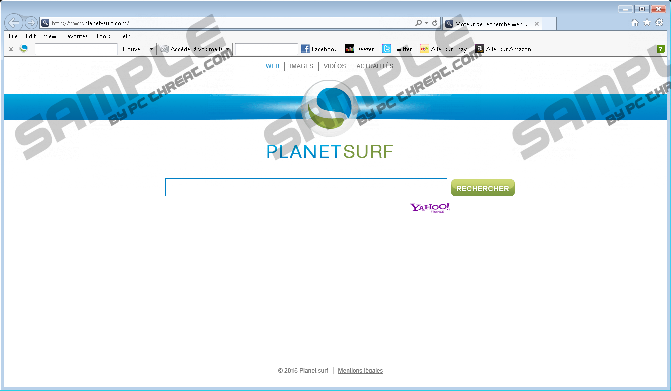 Planet-surf.comIf your web browser’s homepage has been changed to Planet-surf.com, then you should know that your computer has been infected with a browser hijacker that you have to remove. In most cases this particular browser hijacker comes bundled with a program called Emotiplus, but it can also come with other programs as well. Furthermore, the installer allows you to opt out from installing Planet-surf.com and its accompanying browser extension for Internet Explorer. Once on your computer, this hijacker will hijack your browser’s homepage and set its address. It does that in an effort to make you use it as a search engine and make money for its developers in the process. However, this hijacker’s promotions can jeopardize your computer’s security and serve as a means for more malware to infect your PC. We tried to find as much information about this hijacker as possible, and we had some success. We have found that Planet-surf.com was developed by a company based in France. However, this company did not digitally sign this search engine/browser hijacker which leads us to believe that this was done on purpose to avoid unwanted attention. Take note that this same developer also released other browser hijackers that include names such as Secure-surf.com, Explorary.com, and Secury-surf.com. Therefore, we conclude that this developer has been around for some time, and more hijackers are sure to follow. We have found that usually Secury-surf.com comes bundled with various applications that are distributed on freeware hosting websites. Our research has revealed that this particular browser hijacker can come bundled with an application called Emotiplus. This application offers its users additional emoticons for Skype, and it is featured on Emotiplus.com. This application was released by a company called Development Media 73 which is known to have released several shady search engines. In the case of Emotiplus, you have the choice to remove this hijacker from the installation. Apart from this program, Planet-surf.com might also come with other applications that do not let you choose whether you want to install it. Therefore, we regard its distribution methods as malicious, and this is the main reason Planet-surf.com was classified as a browser hijacker. Unsanctioned actions performed by it must not be tolerated. Nevertheless, this hijacker has more serious problems. Let us discuss how this hijacker works in greater detail. When you install its accompanying browser extension for Internet Explorer called Planet Surf Toolbar it will ask whether you want to set Planet-surf.com as your browser’s homepage (note that the offer will be presented in French.) If you agree, then it will replace the current homepage, and you will start to use it as your main search engine. Planet-surf.com uses search results of Yahoo.com, but the problem is that the results can include promotional links that may not always be safe. Due to this hijacker’s secretive developers and deceptive distribution tactics, it is reasonable to think that it can promote illicit malicious content as it makes the developers the same amount of money, if not more. We assume that the whole purpose of this hijacker is to generate advertising revenue and the same can be said about its clones. We have also found that this hijacker may collect information about you which includes your IP address, Internet Service Provider, system information, browsing history and search history. All of this information is used to customize the advertising campaign and present you with ads you might want to check out, but they may be deceptive, and your PC might get infected with adware, such as CrunchTravel or QuantumCoupons, which will further compromise your computer’s security and open up new possibilities for other malware. This is no laughing matter, so the sooner you get rid of this infection, the better. To sum up, Planet-surf.com can be used as a search engine, but it is bound to include promotional links in its search results. Therefore, it is an unreliable search engine and due to the fact that it is distributed in a deceptive manner, it was classified as a browser hijacker. Therefore, we recommend that your reset Internet Explorer to default. However, if that does not work, then we recommend using our alternative manual removal guide. Option 1: reset Internet Explorer to default