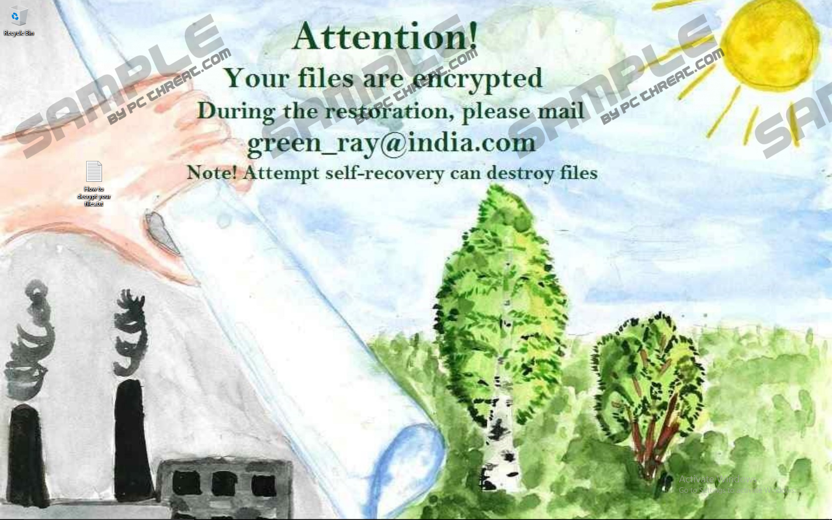Green_ray RansomwareGreen_ray Ransomware is an infection that is very easy to identify as a serious threat. It does not have a misleading interface, and it does not pretend to work in a beneficial manner. Right upon execution, this threat encrypts the files found on you operating system and then hijacks your Desktop with a wallpaper (replaced by “How to decrypt your files.jpg”) urging you to take action. This notification informs that your files got encrypted and that you have to contact green_ray@india.com (explains the name). What is more, a warning is attached claiming that your files would be destroyed if you attempted to recover them yourself. This is a scare tactic that is meant to push you into following the instructions, and the first step is contacting the email provided. The same action is requested via a TXT file ("How to decrypt your files.txt") created on your Desktop. Whether you follow these instructions or not, you will need to remove Green_ray Ransomware, and this is what this report is about. According to our malware researchers, Green_ray Ransomware is very similar to Mahasaraswati Ransomware and Vegclass@aol.com Ransomware, both of which we have analyzed in the past. Looking at how these threats are distributed and how they are represented, it is very likely that they were created by the same creator. For example, the extension attached to the files encrypted by Green_ray Ransomware is “.id-[ID].{green_ray@india.com}.xtbl” (possibly ".id-[ID].{green_ray@aol.com}.xtbl" as well), and the extension associated with Mahasaraswati Ransomware “is.id-[ID].{mahasaraswati@india.com}.xtbl”. You must see the resemblance. Furthermore, both of these infections have been found to encrypt executable files, which is not common with most other ransomware infections that we have analyzed in our internal lab. As you might understand – or you might have witnessed it yourself – the encryption of .exe files might paralyze browsers, antivirus tools, malware scanners, and other applications. Of course, that does not mean that it is impossible to remove malicious infections from your computer. What you can do is use a different computer to download the software you want to install and transfer the installers onto the corrupted PC using an external drive (e.g., flash drive). You can use this method when removing the ransomware as well. Just like its clones, Green_ray Ransomware spreads mostly via spam emails. Other methods of distribution might be employed, but it is most likely that that you will execute this threat yourself by opening corrupted attachments sent to you via email. It is important to acknowledge this, as it could help you prevent malware from attacking your PC in the future. Users are often overconfident about their knowledge of malware, and they underestimate the skills of cyber criminals. In reality, malware creators work hard to conceal their threats or make them appear something they are not, to make you download them without suspecting a risk. For example, when it comes to spam email attacks, cyber crooks might use the names and logos of banks, post and delivery services, flight carriers, and other reputable companies just to fool you. If you are not vigilant, the next unfamiliar attachment you open could be used to infiltrate malware. So, be careful, do not trust unfamiliar senders, and certainly do not open files that represent unexpected files. Once you email the creators of the ransomware, you should receive a reply asking to pay a ransom in return of the decryption of your files. While we cannot tell you what to do, we certainly recommend thinking long and hard about paying the ransom because you are at risk of losing a lot of money without a reason. First of all, cyber criminals might not hold their end of the deal. Second, you might be able to restore your files in other ways. If you have set up a system restore point before the attack, you might be able to reverse the damage, as Shadow Volume Copies are not deleted by this ransomware. If that does not work or a system restore point simply does not exist, look into third-party decryption tools. When it comes to deleting Green_ray Ransomware, you have to be very smart about your actions. Manual removal is not always the easiest option, and it is wise to look into automated anti-malware software. This software is particularly helpful if other threats are present or if you want to enable full-time protection against malware in the future. Green_ray Ransomware RemovalN.B. The executable representing this ransomware has the name of a file you downloaded yourself, and you might have downloaded it in a different location. If you cannot find the malicious .exe file, scan your PC to locate it.
