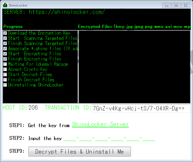 ShinoLocker RansomwareShinoLocker Ransomware was developed as an educational software that allows you to create ransomware and test the capability of a security tool installed on the system. The first time it was shown to the public was during a presentation at the Black Hat 2016 event. A unique version of ShinoLocker Ransomware can still be created on its dedicated website. What seems to be the problem is that the software could be used by actual cyber criminals. Further in the article, we will present more details about the ransomware. We hope that it will help understand how the malware should work and how cyber criminals could modify it. Plus, we will also add removal instructions for users who want to eliminate the threat manually. The educational ransomware was created by a security researcher known as Shota Shinogi. According to the description in the blackhat.com website the software was designed to “test your security performance against ransomware with it.” It also says that it acts “just like a real ransomware but does not ask for any money to get the crypt key.” Despite the fact that the software was created with good intentions, it does not change the fact that cyber criminals might release modified versions. As we said earlier, ShinoLocker Ransomware’s source is a website called shinolocker.com. The site has instructions and also a video that shows how the software works. Apparently, the site contains a window where you can alter some parameters or leave the default ones. For example, users can choose file types that the ransomware would encrypt, set it to delete shadow copies or program it to leave them. Then, what is left is to click the “Build” button that downloads the malicious program’s file. Originally, as you launch the file, ShinoLocker Ransomware should start the encryption process. There should be a window called “ShinoLocker” as well. It shows progress, encrypted files, and below there are three steps that users should follow to decrypt their locked data. The bad news is that anyone can get the software’s source code and create a unique variant of ShinoLocker Ransomware. Thus, cyber criminals could change not only the malware’s title but also its appearance. In that case, the victim might be unable to recognize the threat. Moreover, they could alter the code so that the malicious application would display a ransom note that might demand users to pay for the decryption key. To make matters worse, it is also possible to develop a version without any safety switches. The educational variant was created in a way that if anything goes wrong, the user would be able to recover encrypted data. To be more precise, the original malware from the website should place copies of encrypted data inside the user’s Recycle Bin. Thus, if the user is unable to decrypt his data, it can still be recovered from the Recycle Bin. Nonetheless, as we mentioned before, versions built by cyber criminals might not come with such a safety switches. If you download the educational version from the official site, the malicious file should be placed where you chose to save it. Nevertheless, the malware should make a copy of the file and place it in one of the folders on the system. Of course, in this case, the malicious program should remove itself once it decrypts your data. However, in case the user receives a modified variant, it is better to know how to erase it manually. To eliminate the malware, you would have to delete not only the infected file that you saved in the Downloads, Desktop, or other directories but also its copy. If you check the instructions below it will guide you through the process. Also, ShinoLocker Ransomware can be removed with a legitimate antimalware tool too. Just, install the tool, launch it, and perform a system scan. As the results show up, click the deletion button, and the threat will be erased. Eliminate ShinoLocker Ransomware