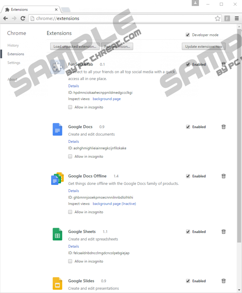 Search.funsocialtabsearch.comDo you think that Search.funsocialtabsearch.com is a decent search engine? Is it because it has shortcuts to Facebook, Twitter, Tumblr, and other popular websites? Unfortunately, we regret to tell you this search engine is no good. In fact, it is a browser hijacker that modifies your browser’s settings without your permission. As a result, these modifications may lead to severe computer infections, and you need to prevent that by removing Search.funsocialtabsearch.com today. Scroll down to the bottom of this description for the detailed removal instructions, and then do not forget to protect your system from similar applications that might enter it without your permission. Albeit the hijacker must have perched on your browser without you knowing it, it is not possible to say it entered your system surreptitiously. In other words, Search.funsocialtabsearch.com needs to be installed on a target computer by the user. And if you say you do not remember installing this application, this might also be true. However, that is associated with the ways this hijacker gets distributed around. For one, Search.funsocialtabsearch.com does not spread on its own. It is a part of the FunSocialTab extension. This extension has an official homepage, but it is very doubtful user come across funsocialtab.com by themselves and download the app directly. In fact, our research shows that the program usually gets distributed via pop-ups. For example, if you access some online gaming websites, and a lot of pop-ups suddenly appear on your screen, you should be careful to not click any of them. There is a good chance that by clicking those pop-ups you could initiate freeware and adware download, so you need to avoid that. If, by any chance, this application got installed on your PC, then it will change your default search engine and homepage on Chrome and Firefox. Also, the FunSocialTab extension will be added to your browser, too. You may not think it is a big deal at first because the search engine looks very much like your average search provider. Nevertheless, it is no different from Search.emaildefendsearch.com, Search.realcoolmoviessearch.com, Search.searchinsocial.com, and other browser hijackers that belong to extensions. They cannot provide you with an original search function because they are too limited. For instance, if you were to run a search query via Search.funsocialtabsearch.com, all of your results will be redirected to Yahoo! Search. This does not mean that the hijacker is an official representative of Yahoo! Search. Instead, the program simply makes use of the popular engine to get the job done. Albeit some of the results may seem relevant, you have to remember that browser hijackers often display modified search results in order to generate a financial profit. You are not the only one who got infected with Search.funsocialtabsearch.com. This browser hijacker has also been detected in Spain, Sri Lanka, Sweden, Egypt, Colombia, Uruguay, Chile, Morocco, and other countries. As you can see, it does not recognize borders, and freely travels around the globe. Thus, you need to recognize the potential security threats behind this application, and get rid of it at once. The main security concern associated with browser hijackers is exposure to corrupted cyber content. Browser hijackers, adware, and similar applications are really vulnerable when it comes to third-party exploitation. Since they need to make money by promoting third-party content, they accommodate almost any type of content. In other words, Search.funsocialtabsearch.com does not review the links it promotes and displays, and so malevolent third parties can easily make use of that to promote their own corrupted content. For the most part, it is usually random commercial sites that are part of online marketing schemes. However, in the worst-case scenario, you could also end up getting infected with malware, and surely, every single user would want to avoid that. You can remove Search.funsocialtabsearch.com manually or automatically. Manual removal will only take care of the hijacker and the extension. Automatic removal will delete all the unwanted apps that are currently on your computer. You cannot think this hijacker is the only threat on-board, right? After all, such applications always travel in packs, so you can be sure you have a list of pests to terminate. Scan your PC with a legitimate antispyware tool to detect all the programs you have to delete, and then get rid of them automatically. For any further questions, do not hesitate to leave us a comment below. How to Remove Search.funsocialtabsearch.comMozilla Firefox