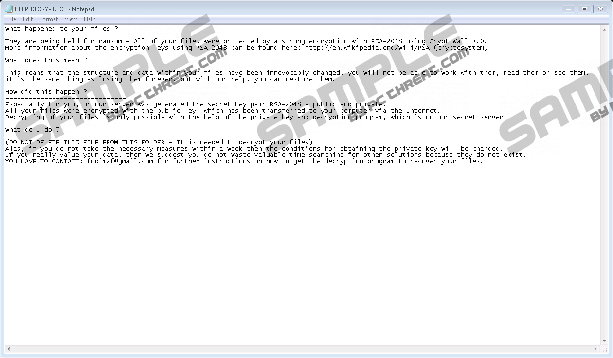 Crypt0 RansomwareCrypt0 Ransomware could be your next worst nightmare but this time you should be thankful to the “heavens of the virtual world” because this threat is rather a serious warning for you and may not end in a disaster. Most ransomware infections can cause severe damage to you by encrypting your files, thus making them inaccessible and unusable. However, this piece of malicious software seems to be the works of total amateurs since the code is quite poorly written. As a matter of fact, even if this ransomware encrypts all your .exe files, there is a way out other than paying the ransom fee to these crooks. The good news is that we have found a working tool on the web that can help you recover your files. Therefore, we do not advise you to contact these criminals or to pay up. On the contrary, we suggest that you remove Crypt0 Ransomware immediately so that you can start restoring your computer. There is no other way for you to do so because with every reboot you risk another encryption. Please read on to find out more about this pseudo-dangerous ransomware infection and how you could avoid similar threats. Just because you could be in the luck by being struck by this malware program, it does not mean that it cannot cause you problems. First of all, you need to understand how this threat managed to appear on your computer. While you may think that this infection has entered your system in a mysterious way, you should know that the only way for this threat to be able to infiltrate your computer is with your help actually. This means that you need to open a spam e-mail, download its attachment, and open it to initiate this attack. You may not even recall opening a spam message because today’s criminals use sophisticated tricks to convince you to want to see the content, i.e., the attached file. This can be done by the use of made-up sender e-mail addresses that can make you believe that the mails have come from trustworthy sources or, at least, you do not feel any doubt about them. Another trick is the subject of these mails that can be anything regarding your credit card details, a hotel or flight booking gone wrong, an urgent unpaid invoice, or something else that could raise your eyebrows. Have you got any mails recently that match these possible subjects? If you want to defend your system from ransomware threats, you should be more cautious when opening e-mails and their attachments. Because while you may think that you are going to see an allegedly unpaid invoice document, you may download a malicious text file that has a macro code that, once enabled, will download this or any other ransomware infections silently in the background. What you will notice is only the fact that within a minute you cannot use your files since they will all be encrypted. If you want to save your computer, you should delete Crypt0 Ransomware right away and restore your files. As we have already explained, when you run the downloaded file, it will install and activate this threat in the background. We have found that it places its executable file “crypt0-Encrypt.exe” in the “%ALLUSERSPROFILE%\Start Menu\Programs\Startup\” folder if you have Windows XP or “%APPDATA%\Microsoft\Windows\Start Menu\Programs\Startup\” if you have Windows Vista or later versions. This means that this infection will start up and run every time you restart your computer. That is why it is so important that you remove Crypt0 Ransomware if you do not want your files to get encrypted again and again making it impossible for you to use your machine. This ransomware only seems to target “.exe” files. However, it leaves Microsoft-signed files alone, i.e., it does not encrypt “%WINDIR%” folder and other related programs, such as Internet Explorer. We have found that this infection does not add a new extension to the encrypted files, but, instead, it adds “_crypt0” to the file names itself, for example “myimage_crypt0.jpg.” Unlike most other ransomware programs, this threat does not lock your screen with a scary ransom note message or image, but it drops a text file called "HELP_DECRYPT.TXT" in every affected folder. Therefore, you will only know what has hit your computer when you open this file. This ransom note informs you that your files have been encrypted with RSA-2048, which is a serious encryption algorithm that is part of the Windows operating system. The whole process of encryption could take as little as 20 seconds so that leaves you no time to react even if you realize that your programs are not starting up. You are supposed to send an e-mail to “fndimaf@gmail.com” if you want to ever use your files again to get the private key and the decryption program. Of course, you have to pay a certain amount of money to get these, which is not detailed in this note. It is most likely that you have to transfer the money to a Bitcoin wallet and the amount could be anything between 0.1 and 1 BTC (61 to 610 US dollars). However, in this case you do not even need to think about risking to pay because this threat is the work of some amateur authors. Although this ransomware has just hit the web only recently, there is already an available free tool to recover your files. We do not recommend that you search for and download this file yourself, let alone use it if you are not an experienced computer user. But before you set out to do so or ask a friend or a professional, the first step should be for you to remove Crypt0 Ransomware ASAP. It is really not that complicated to clean this threat from your system. We have prepared instructions for you so that you can put an end to this invasion manually once and for all. Once you are done with it, you can deal with the restoration of your files. If you want to avoid similar attacks, you really need to be more careful around your inbox but also, about the choice of the websites you visit and the third-party ads you click on. All in all, we advise you to in