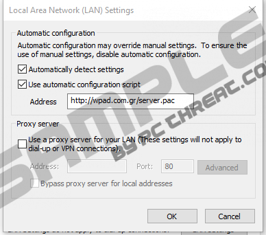 Trojan.RedirectorTrojan.Redirector is a serious computer infection that enters computers with an intention of setting proxy on the Internet Explorer browser and then showing irritating advertisements, banners, and pop-ups. According to specialists at pcthreat.com, this Trojan might even replace the search results provided by popular search engines, e.g. Google and Yahoo! with unreliable search results (usually sponsored search results) in order to redirect traffic. There is, of course, a particular reason why this computer infection acts like that. It is very likely that it works like this to help cyber criminals to earn some money from online advertising. Of course, users do not get anything good from that. They just see a bunch of irritating commercials, they might notice such a message as Waiting for proxy tunnel in the status bar of the default browser, and, finally, the search tool they use might need more time to display the search results. Research has shown that Trojan.Redirector is quite an old infection, but it is still prevalent. It seems that it has already infected 900 000 IPs worldwide, so the presence of irritating ads on your screen might really indicate that there is Trojan.Redirector hiding on your computer. It is especially true if you cannot find an ad-supported application responsible for the presence of these ads on your computer. In order to be able to redirect traffic, Trojan.Redirector makes several changes on the infected computer. It has been found that it, first of all, changes the Value data of the Value AutoConfigURL which can be found by following this path [HKLM/HKCU]\SOFTWARE\MICROSOFT\WINDOWS\CURRENTVERSION\INTERNET SETTINGS. If it has already changed the Value data, e.g. it might enter the URL http://wpad.com.gr/server.pac there, you will notice changes in the Local Area Network (LAN) Settings panel too. You will see the URL from the Value data in the Address line. On top of that, two options Automatically detect settings and Use automatic configuration script will be enabled. Of course, Trojan.Redirector does not need to get your permission to carry out those modifications. At first glance, it might seem to be easy to uncheck boxes and delete the Address line in the Local Area Network (LAN) Settings panel; however, it is not true. Even though you change those settings, Trojan.Redirector will set its own settings after the computer restart again. In order to be able to reset proxy with every system restart, it creates its own Task in the Tasks folder %WINDIR%\System32\Tasks or %WINDIR%\Tasks, depending on the version of your Windows OS. In addition, scripts reset.txt and update.txt are placed in %COMMONPROGRAMFILES(x86)% and %COMMONPROGRAMFILES%. The infected computer starts with those scripts every time. Speaking generally, Trojan.Redirector acts like this to ensure its persistence on the system. All these banners, pop-up ads, and sponsored search results which you will see if you keep Trojan.Redirector on your computer are not only very irritating, but might also be dangerous. It has been found that these ads look quite harmless; however, in reality, they might redirect you to bad web pages quickly. Therefore, you should hurry to remove this Trojan from the system and, in the meantime, ignore those advertisements. It is always a bad idea to allow a Trojan infection to enter the computer. It has been found that they might find different ways to enter systems, but they always do that secretly. In the case of Trojan.Redirector, it seems that it might take the name of a seemingly reliable application, e.g. WinRAR 5.2 msi and WinRAR 5.11 Final, which explains why so many users do not know that they have allowed Trojan.Redirector to enter their computers. Trojans are those infections that are really hard to prevent from entering computers, so we suggest that you install a security tool to protect your PC from future dangers instead of trying to protect the computer yourself. Trojan.Redirector has to be erased from the system as soon as possible. Unfortunately, it will not be very easy to get rid of it because it has made several important modifications the second it has entered the computer. Below-provided instructions should help you to erase this infection manually; however, if you still find it too hard to do that, you should delete it automatically. Use SpyHunter if you want to delete Trojan.Redirector and ALL other threats from your PC. Delete Trojan.Redirector