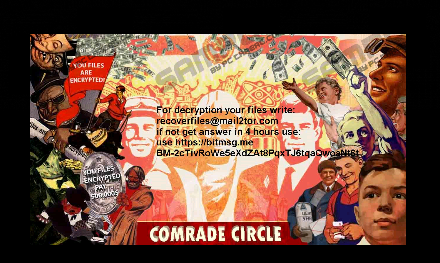 Comrade Circle RansomwareComrade Circle Ransomware is a malicious application developed by people belonging to the group called Comrade Circle. It enters computers to encrypt personal files so that it could obtain money from users. Following the successful infiltration, Comrade Circle Ransomware creates the executable file 1.exe in %TEMP%. This file opens the fake Windows update screen (Configuring critical Windows Updates) which locks Desktop. The ransomware infection opens this window and then starts encrypting personal files, including pictures, documents, videos, and music files. Even though the fake window can be easily closed by tapping Ctrl + Alt + Del simultaneously, it will not be that easy to decrypt files Comrade Circle Ransomware has encrypted because you need to have a special key to do that. Do not buy the decryptor even though you have important files and want to get them back because the owners of Comrade Circle Ransomware might not send you the decryption key even though, theoretically, they should have all those keys hidden on a secret server. What you should do instead of making a payment to them is to delete the ransomware infection from the system. Unfortunately, it might mean that you will never be allowed to access your files again. It is especially true if your files are not backed up and stored on external storage. You already know that Comrade Circle Ransomware opens a fake Windows update screen when encrypting files; however, it is not the only proof that it is inside the system. As researchers working at pcthreat.com have found, this ransomware infection also changes the Desktop background and leaves ransom notes (RESTORE-FILEs![string of numbers].txt) in almost all directories containing encrypted files. What is more, you will definitely see that original names and extensions of your files have been changed. File names will be changed using the Base64 encoding, whereas the original extensions will be replaced by the .comrade extension that belongs to the ransomware infection. The ransom note Comrade Circle Ransomware creates presents three options for users. The first one is to purchase the decryption software, the second one is to send as much money as users can (users will not get the decryptor in this case), and the third one is to join the Comrade Circle team and thus help to spread the infection. You should not pay attention to the message left for you. Make sure you do not transfer money to cyber criminals as well. There are two reasons specialists say so: 1) the decryption key costs ~2 Bitcoins, which is $1260 at the time of writing; 2) even though you pay this huge ransom it demands, you might not get the key for unlocking your files. Unfortunately, it is impossible to decrypt files without the key cyber criminals have; however, you should not hurry to delete those files it has encrypted because it might be possible to decrypt them one day with the free decryptor specialists might develop. As research recently carried out by our specialists has revealed, Comrade Circle Ransomware might be distributed in several different ways. First of all, people who join the Comrade Circle team might help to spread it. Secondly, it might travel in spam emails pretending to be a legitimate invoice, tax return form, or another harmless document. Third, it is known that it might be dropped by the Trojan. It is not a piece of cake to protect systems from such dangerous computer infections as Comrade Circle Ransomware. Therefore, in the opinion of our security specialists, every user needs to have a reputable security tool installed on the computer. Of course, people should be careful themselves too, for example, it is highly recommended to ignore all the spam emails. Comrade Circle Ransomware slightly differs from other ransomware infections – it does not lock Desktop and it does not block system utilities (e.g. Registry Editor and Task Manager). This means that it should not be very hard to remove this infection. Of course, if you decide to erase it in a manual way, we suggest paying attention to our step-by-step removal guide which you will find below. Have you decided to delete Comrade Circle Ransomware automatically? If so, we want to remind you to use only a reputable malware remover, such as SpyHunter. It is because those unreliable tools might install additional malware and do not do anything useful. In most cases, they cannot even delete the tiniest malicious component. Delete Comrade Circle Ransomware