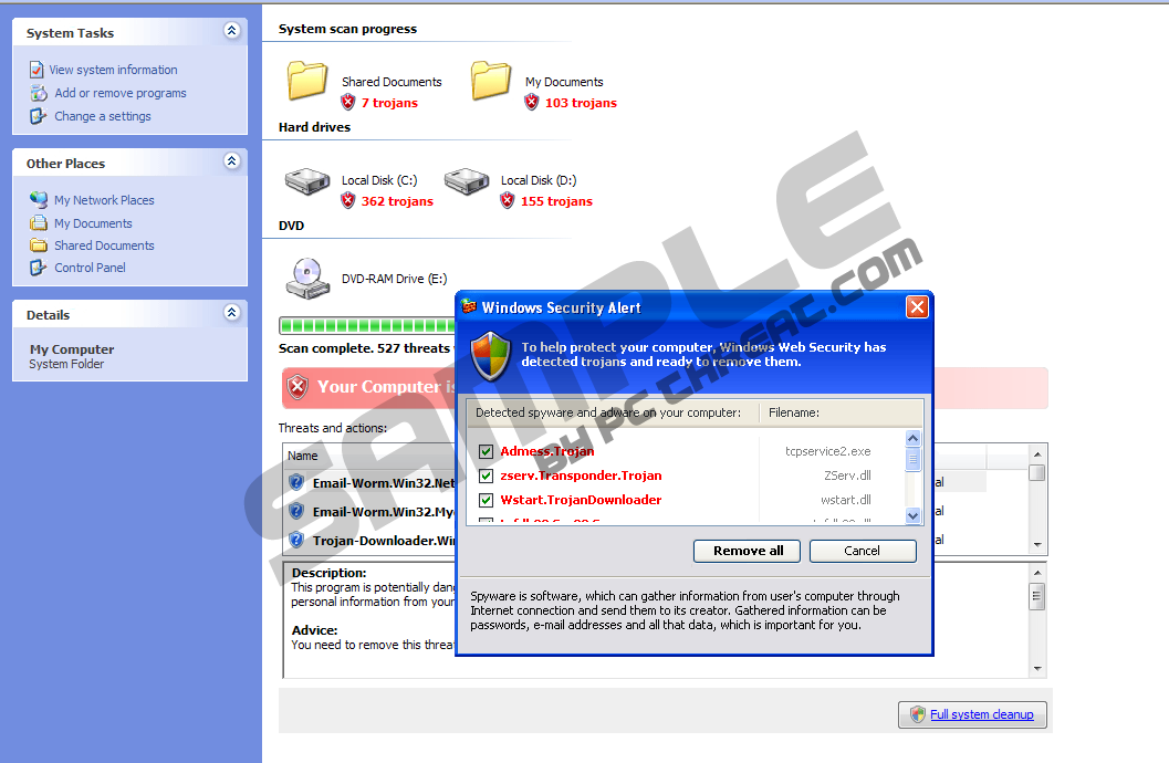 Stabilitysolutionslook.comStabilitysolutionslook.com is a malicious website which attempts to coerce unsuspecting computer users into purchasing the rogue anti-spyware program, otherwise known as System Security. The technical nature of this hijacker is such that it infiltrates the unsuspecting system via Zlob Trojan. This Trojan is programmed to configure the user’s web browser to conform to the pre-determined malicious tactics of the malware. This target web page tends to resemble the internal folder window on the infiltrated system, and will attempt to imitate a system scan. This scan is coded to deliver results which will claim to have found various malware infections. You may also get some fabricated pop-up advertisement messages while on Stabilitysolutionslook.com. This strategy is intended to ensure the user believes that their system is actually infected and needs to undergo security software processing. Important to remember is the fact that by merely being on Stabilitysolutionslook.com website, the user may already have triggered some of its malicious scripts in such a way that the user’s system functionality is compromised. So don’t get surprised if you notice you machine getting slower after you visit this site. The basic idea of Stabilitysolutionslook.com, though, is tricking you into paying for the InternetAntivirusPro scam ware. |