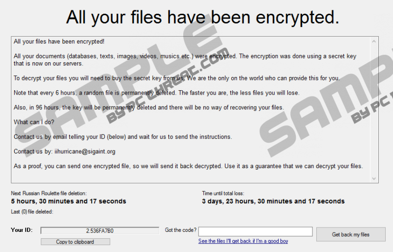 ihurricane@sigaint.org Ransomwareihurricane@sigaint.org Ransomware appears to be a new version of a malicious application called Stampado Ransomware. This time the malware’s creators might be distributing it with malicious installers of legitimate programs, for example, antimalware applications. Therefore, users have to be extra cautious while downloading software if they do not want to get their systems infected. The consequences of allowing ihurricane@sigaint.org Ransomware settle on the system could be rather severe as the application could encrypt most valuable data to you. The threat’s creators may say they can restore the damage they made for a particular price, bus as you realize trusting these cyber criminals might be not the best idea. If you continue reading the article, we will explain to you more about the malware and other possible decryption options. If you decide to eliminate the threat, we encourage you to use the instructions located below. Our researchers were testing a sample of ihurricane@sigaint.org Ransomware that was distributed with a legitimate application. To be more precise, it was an installer of a well-known antivirus program known as AVG. It might seem surprising, but the setup file installed not only the security tool but also the ransomware. Most likely, installers bundled with the malware are distributed through malicious web pages, unreliable file-sharing sites, suspicious pop-up ads, etc. To avoid receiving infected software installers, we would advise you to be more careful with your clicks and always download setup files from legitimate web pages. When users launch the infected installer, ihurricane@sigaint.org Ransomware should place its data in the %UserProfile%\AppData\Roaming directory. What’s more, it was noticed that in some cases, the malicious program might create a randomly titled file in the Temporary Files folder. Afterward, it should create a key called Windows Update in the HKCU\Software\Microsoft\Windows\CurrentVersion\Run location. The software’s creators picked such a title, not without reason. It is supposed to confuse users who want to remove the threat so that they could not identify Registry entries created by the infection. The next step is to find ihurricane@sigaint.org Ransomware’s targeted data, then encrypt it and make it unusable. The infection targets user’s personal files like photographs, pictures, videos, documents, and so on. Also, the data affected by this malware could have replaced titles; plus you can recognize it by a specific extension called .locked. Soon after your files become enciphered, the malicious application should open a separate window containing a message or in other words, a ransom note. It explains what happened to the personal data that was on the computer and demands users to contact the malware’s creators if they want to purchase a decryption key. To scare users into paying the ransom, the malicious application gives a time limit too and threatens to erase one file each 6 hours the payment is not made. However, there is a chance you can get decryption tools without paying a ransom since the software is based on the older version of already existing infection, the decryptor created for Stampado Ransomware might work on files encrypted by ihurricane@sigaint.org Ransomware too. Such decryptor could be available for free on the Internet as volunteer IT specialists should have created it. We believe it is worth to look for such a tool because probably you have nothing to lose and paying the ransom could be risky. The malware’s creators might not bother to help you restore files they locked themselves, but still take your money. If risking your savings does not look like a good option, we advise you to look for the decryption tools we just mentioned or restore affected data from copies, provided you created any before the computer was infected. Lastly, if you decide not to pay the ransom, our researchers recommend removing the malicious application so it could not do any further damage. To get rid of it manually, users could follow the manual instructions located below, while less experienced users could use a reliable antimalware tool. No matter which option you choose, it would be a good idea to keep a fully updated security tool on the computer as it may help you stay away from threats like ihurricane@sigaint.org Ransomware in the future. Remove ihurricane@sigaint.org Ransomware