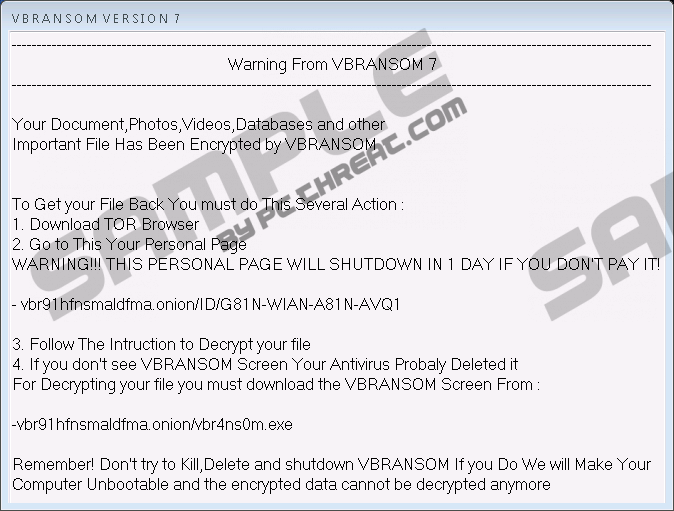 VBRANSOM RansomwareVBRANSOM Ransomware could show you scary messages, but in reality, it might not do any damage to the computer. According to our researchers, the malicious program is most likely still in the development stage. This is why it may not encrypt any data on the user’s computer like it is supposed to do. Thus, if you encountered the unfinished variant of VBRANSOM Ransomware, you should consider yourself quite lucky. Under such circumstances, we would recommend removing the malware from the system immediately. If you are not sure how to do this, there are deletion instructions below this article that could guide you through the process. More details about this infection and will be provided further in the text, so if you want to learn how to avoid ransomware, it might be a good idea to continue reading. The research shows that VBRANSOM Ransomware was distributed quite actively through Spam emails at one point, but at the moment it does not look so active. It is hard to tell if the malware’s developers are just upgrading the infection or if they decided not to continue with its further development. However, what is important now is that you would know how such ransomware applications can be spread, so you could protect the computer if the threat returns updated or if you encounter another similar malicious program. Usually, users infect their system only after they launch a malicious file received through Spam email. It means before opening suspicious data you can check it first. Often we advise users to avoid launching data received unexpectedly, from an unknown sender or raising any suspicion at all, but there are cases when it is too difficult to identify malicious files. That is why it is more advisable to check email attachments with a trustworthy antimalware tool. The scanning process should not take much time and afterward you will know whether it is safe to open the attachment. A fully updated legitimate security tool might be the best user’s investment as it may help guard the system against not only infections such as VBRANSOM Ransomware but also other malware. What happens if you launch the ransomware? This particular malicious application’s version was programmed to search for files in the %USERPROFILE%\My Documents\VBRANSOMTEST directory. Clearly, this is a very specific folder that was most likely created by the VBRANSOM Ransomware’s developers who wanted to test the infection. For now, it does not seem like the threat could encrypt any data and yet it might display a message saying “your documents, photos, videos, databases and other Important file has been encrypted by VBRANSOM”. The malware’s ransom note should be shown in a separate window, and by the time it appears the threat may play a voice message too. Fortunately, it stops on its own after it warns the user. The further instructions mention a personal web page which is reachable through TOR browser. We have no doubt that on the site users should find further instructions telling how to purchase some decryption tool to unlock their files. Since this malware does not encrypt any data, you should simply ignore the message and remove the threat as soon as possible. Manual deletion is possible if you can locate the malicious file you had launched before the infection attacked the system, although for the starters you should get rid of the ransom note. To close the message users would have to kill its process via Task Manager as it is shown in the instructions below. Then you can continue with instructions and erase the malicious file or download a reliable security tool and let it deal with VBRANSOM Ransomware. Once the infection is gone, we would also advise users to strengthen the computer’s security and backup necessary files, because the next time they might encounter much more dangerous threats. If you decide to acquire reliable antimalware software, keep it updated, and your system should be protected. Eliminate VBRANSOM Ransomware