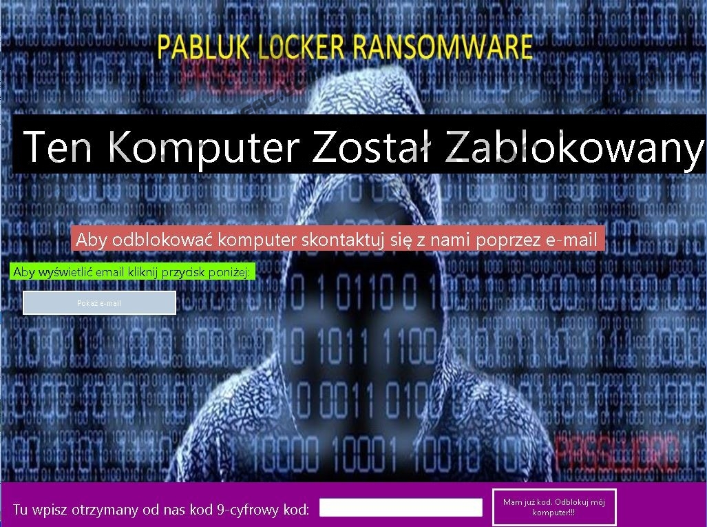 Pabluk Locker RansomwarePabluk Locker Ransomware is a new Polish ransomware infection that may scare you enough to pay the ransom fee to unblock your computer. This ransomware, as its name suggests, only locks your screen but does not actually encrypt your personal files or any files for that matter. This is definitely good news; however, if this ransom program has managed to infiltrate your system, there is a good chance that more dangerous ones will also find a way sooner or later. The authors of this malware infection will ask for a certain amount of ransom fee in a reply message once you contact them via e-mail. As a matter of fact, transferring any amount of money to cyber criminals means supporting cyber crime. Fortunately, we are here to help you with this threat and we can show you how you can remove Pabluk Locker Ransomware from your system. Please read our full report to learn more about this annoying ransomware infection. When it comes to ransomware programs there are mainly two widely used channels of distribution. First and foremost, the malicious executable file can be delivered to your computer in a spam e-mail. This mail can be very convincing and misleading. You may think, for example, that it has come from a branch of the government, your own bank, a reputable company, or even the police. How could you know it is not true and why would you doubt it at all? Well, we suggest that whenever you find a questionable mail in your inbox or even in your spam folder, make sure with the sender that this content was really meant for you without opening the attachment, of course. The subject of such a spam can also strengthen the fake idea that you are dealing with an urgent message. Nevertheless, opening this mail will not get you too far since the body will most likely simply point you towards downloading the attachment, which can be an image, a video, or a text file with macro. If this was a proper ransomware that encrypts you files, running the attachment would mean the loss of all your files and even if you deleted the ransomware, you could not recover your files without the decryption key or a tool. However, in this case you are in the luck since it is not even too complicated to delete Pabluk Locker Ransomware from your PC and without harming your precious files, too. But that still does not solve the issue of the possible vulnerability of your computer. Another method criminals like to use and a pretty stealthy one as well is called Exploit Kits (e.g., Angler). This method is mostly dangerous for those users who do not update their browsers and drivers (Flash and Java) regularly. Criminals create malicious pages with corrupt Java or Flash content that can be triggered the moment you land on such a page. This can happen after, for example, you click on unreliable third-party content, such as a modified search result link and an advertisement. Since this way you can download dangerous ransomware threats in no time and without even realizing it, you should avoid clicking on questionable content and it is essential that you keep all your programs and drivers up-to-date. Once you initiate this attack by opening the downloaded malicious file, it blocks your screen with a ransom note that covers your whole screen. The note is in Polish language so we can assume that these criminals mainly aim at the Polish users. Apart from blocking and locking your screen, this malware infection also blocks your system files from running. This means that you cannot close this window and run your Task Manager, your File Explorer, or any other program either. Clearly, this would suggest you that your computer has been locked and there is no other way for you to stop this attack than pay up to these criminals. If you click on the “Pokaz e-mail” button, you will be given two e-mail addresses to contact these crooks by: pab.luk200@wp.pl and pab.luk500@gmail.com. Then, you are supposed to get a response in which you should have instructions for payment. If you transfer the money, you would supposedly get a 9-digit code that you could enter at the bottom of this ransom note window to unlock your computer. However, our experience shows that it is always risky to pay up since there is no warranty that cyber crooks keep their promise. Since this screen locker does not even encrypt your files, there is really no need for panic. We have the solution for you and you can remove Pabluk Locker Ransomware in a few minutes. Let us tell you how. Since this ransomware infection blocks your system files, you need to restart your computer in Safe Mode first so that you can stop this vicious process, i.e., the lock. Only then can you delete the downloaded malicious file that initiated this attack. Please follow our instructions below if you need help with these steps. Also, it could be time for you to consider making regular backups on a removable drive since this is usually the only way for you to recover your files if a more dangerous ransomware ever hits you. Apart from doing backups, we also recommend that you protect your computer with a reliable anti-malware application, such as SpyHunter. Restart your computer in Safe ModeWindows XP, Windows Vista, and Windows 7