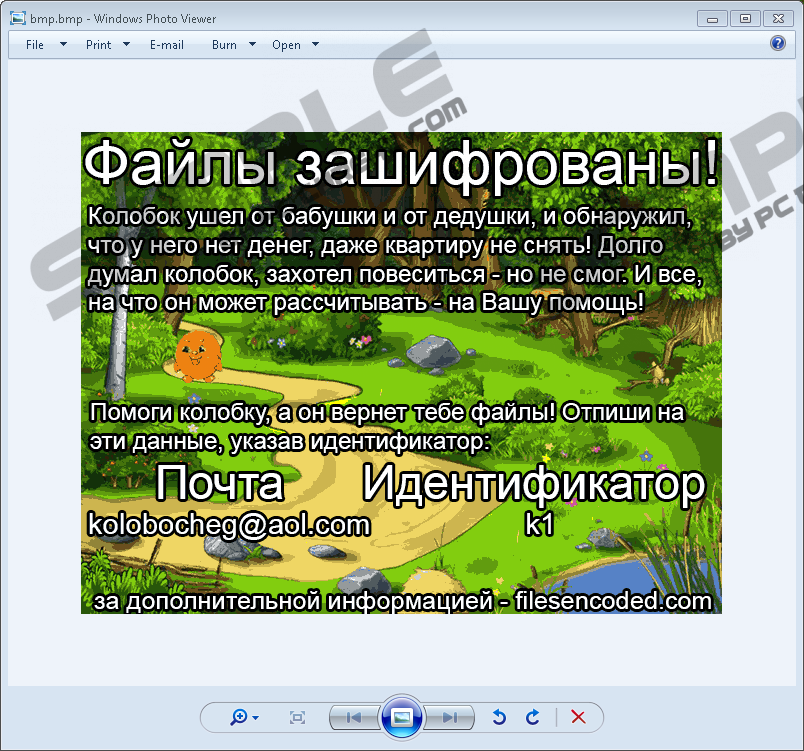 Kolobo RansomwareKolobo Ransomware is yet another computer infection that intends to force innocent users to pay a ransom fee in exchange for a file decryption tool. Encrypting ransomware programs have been all the rage lately, and it seems that quite a few cyber criminals opt to buy such programs and infect as many users as possible with the intention to reap easy financial profits. Users are strongly encouraged to remove Kolobo Ransomware and other malicious threats that might be installed on their computers. Malware removal might be too challenging, so users should consider using a licensed antispyware tool to complete this task. During our research, we have found that this program is a very old ransomware application that was first detected in March 2014. The official homepage for this program used to be hosted on filesencoded.com, but since it has been more than three years since the release of this infection, the official homepage does not work anymore. Judging from the behavioral patterns and the structure of this program, we can tell that it is a variant of the Gingerbread ransomware infection. Gingerbread ransomware was first documented in November 2016, and just like the Kolobo infection this program always displays the ransom note entirely in the Russian language. Since the ransom note is in Russian, we can assume that the program targets computer users in the Russian-speaking countries, mainly in Russia and the CIS states. However, if you stumble upon the program’s distribution path, you might get infected with the ransomware, too. The best way to avoid this infection is to refrain from downloading unfamiliar files from third-party websites. Also, ransomware programs often employ spam emails to spread around, so if you receive an email with an attachment, and that email message urges you to open the said attachment, perhaps you should not do that. Or, if you think that you must open the file no matter what, please scan the file with a computer security program of your choice first. However, if the program manages to enter your computer either way, then you can expect something nasty from it. Like most of the ransomware programs, Kolobo Ransomware will scan your computer searching for the files it can encrypt, and then it will use the XOR and RSA algorithms to scramble the information within your files. Once the encryption is complete, you will no longer be able to access most of your frequently-used data, so that is definitely problematic. Also, when the program is done with the encryption, it changes your desktop background into the ransom note that tells you in Russian your files have been encrypted. It says that Kolobok (a Russian fairy tale character) has left home and is struggling really hard to pay rent, so he needs your help in exchange to your files. You are supposed to contact the criminals behind this infection via the email address kolobocheg@aol.com, but seeing how this program is so old, the chances are that there is no one to receive your messages at the other end, and so it is not like anyone would issue the decryption key, too. The ransomware program is old, so there should be a decryption tool for it available for the public. However, if you cannot find it, please do not panic. You can still restore your files from an external backup. Also, quite often users save a lot of files in their inbox without even realizing it. So when you remove Kolobo Ransomware from your computer, check all the email messages in your inbox and outbox and you will be surprised just how many of your files are there. For the manual removal, you can follow the instructions you will find right below this description. However, if you are not sure you can do it on your own; you should invest in a legitimate security application that will delete Kolobo Ransomware automatically, at the same time safeguarding your system from similar infections in the future. If you have questions about ransomware infections or how to secure your computer against similar threats, please feel free to leave us a comment. Our team is always ready to assist you, and we appreciate your feedback! Do all you can to avoid malware! How to Remove Kolobo Ransomware