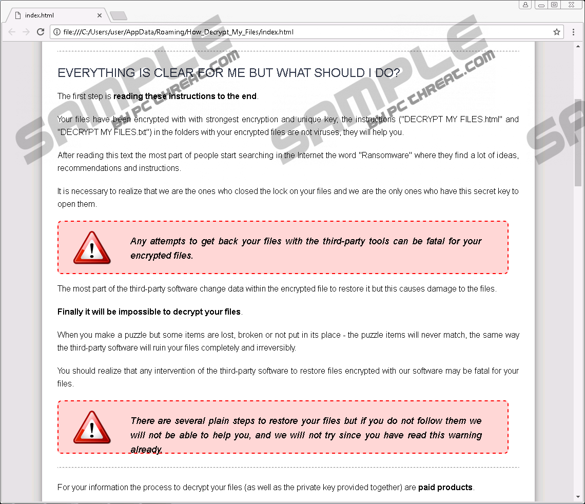 Fatboy RansomwareFatboy Ransomware (a.k.a. PyCL Ransomware) is a new RaaS (Ransomware as a Service) ransomware. Although it has a funny name, you will definitely not laugh if its fully-working version ever slithers onto your computer. Luckily, at the time of writing, it does not work the way it should, i.e. it does not encrypt any files, and it is impossible to pay a ransom it demands because important payment details, e.g. the size of the ransom and the Bitcoin address cannot be found in any of the files left for users. Unfortunately, it does not mean that you are safe because it might be updated and start working properly in the near future, i.e. start locking users’ files with the intention of getting easy money. Go to delete Fatboy Ransomware as soon as possible no matter which of its versions you encounter because it does not mean that the one with the dead C&C server cannot start encrypting your files one day. Are you reading this article because your important files have been locked already? If so, you should remove this ransomware infection without hesitation and do not even think about paying the ransom it demands because you have zero guarantees that the “unique key” will be given to you. It is not a secret that Fatboy Ransomware cannot establish communication with its C&C server and, consequently, does not encrypt files currently; however, it still places the How_Decrypt_My_Files folder on the victim’s computer. Specifically speaking, it is placed in the %APPDATA% directory. It contains several .html files with detailed instructions explaining how to purchase Bitcoins, how to transfer a ransom to get files back, etc. Additionally, several images and one text file (read_me.txt) can be found there. All these files try to convince users that the only way to decrypt files is to make a payment. We cannot say the exact price of the decryption key, but it, without a doubt, will not be cheap, so it is not advisable to make a payment, especially when you do not know whether you will get the key to unlock your data. Needless to say, you do not need to do anything if you have encountered Fatboy Ransomware but noticed that your files are fine. In this case, the removal of ransomware is the only task you need to accomplish. Fatboy Ransomware is quite sophisticated malware, according to specialists working at pcthreat.com. It is because it drops the folder containing a bunch of files on affected computers and might even open a window, which is impossible to close, on Desktop. The folder %APPDATA%\cl this threat drops on computers contains Python files (it is a programming language which was used to create Fatboy Ransomware) and several other files without which this infection could not work: