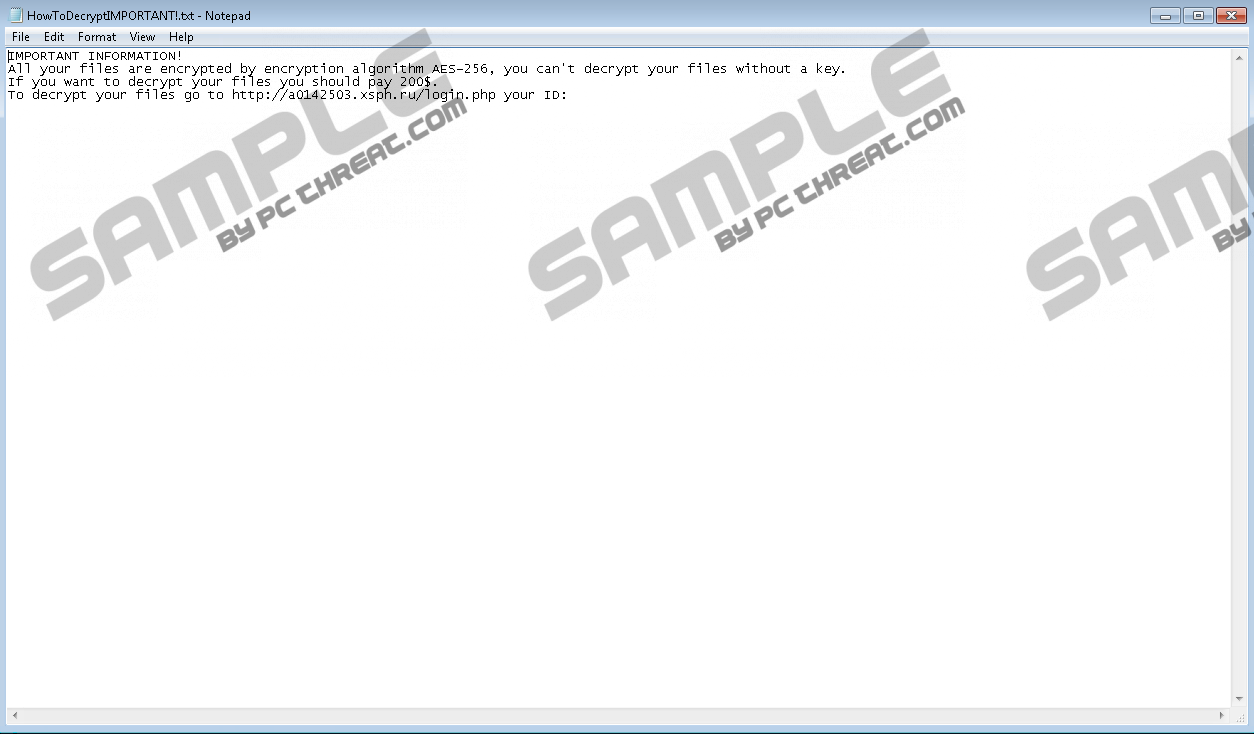 Spectre RansomwareRansomware programs are gaining popularity day by day. That is mostly because they allow cyber criminals to make huge illegal profits at the expense of unsuspecting Internet users. Thus, if you ever happen to encounter a program that goes by the name of Spectre Ransomware while surfing the web, be sure to refrain from it at all costs. It is crucial since ransomware applications can easily lock enormous quantities of data on the affected computer without any notification or authorization. It should be more than obvious that having such a tool active on your PC could have disastrous outcomes. Therefore, our malware experts present you with a few precautionary steps that will help you maintain a safe and secure operating system at all times. Additionally, we present detailed information about the overall functionality of Spectre Ransomware along with its comprehensive removal guide, which you should us as soon as possible if this malware is already active on your PC. Spectre Ransomware works in a relatively simple manner. Its features do not stand out among other ransomware applications that are active nowadays. As soon as it gains full access to your operating system, it starts doing its dirty work. Once it scans your hard drive for its contents, it initiates the encryption procedure. Using a powerful cipher known as AES-256 this malicious lock a large variety of data on the affected computer. Our researchers have discovered that this malware does not target files that are essential for your operating system's functionality. It mostly affects file types such as .pdf, .rtf, .xls, .xlsx, .ppt, bmp, .jpg, .jpeg, .gif, .txt, .doc, .docx, and quite a few others. Each file locked by this devious program will receive a .spectre extension. Unfortunately, manual decryption procedure is out of the question due to the strength of the algorithm that is used to lock data. As soon as all of that is done, you will notice a devious .txt file in a number of folders. That is a ransom note that is usually called HowToDecryptIMPORTANT!. It informs the users about what has happened and what should be done to receive decryption services. While paying to regain your data might seem like a viable option, you must know that there is no guarantee that your files will actually get decrypted even if you make the payment. So making any kind of payment is a risk that we urge you not to take. Be sure to delete Spectre Ransomware at the very same time that it is found up and running on your personal computer. To get rid of it without encountering major problems, simply use the instructions below. It goes without saying that keeping your PC safe and secure at all times should be your priority. To do that, make sure to take a few simple, yet very effective precautionary steps. Firstly, to improve your overall virtual security, you need to install a professional antimalware tool if you do not have one already. Such a tool is paramount because it can warn you in advice about any virtual threat just as well as it can terminate any devious program in a fully automated manner. Besides such a tool, you also need to practice safe browsing habits. This means that you must refrain from all questionable and otherwise suspicious download websites because they are known to be the primary source of bundled installers, which are infamous for hosting not only suspicious programs but malicious ones as well. Furthermore, we urge you to bypass all e-mail attachments that come your way from unknown third-parties. This is critical because malware developers notoriously use spam e-mail campaigns to distribute their invasive application. These relatively simple preventative steps will allow you to avoid programs such as Spectre Ransomware at all times. Under no circumstances delay the termination procedure of Spectre Ransomware if you consider yourself to be a security-conscious user. Be sure to follow the instructions that we provide below with care because it is important to terminate every single bit of Spectre Ransomware to stop its malicious functionally. If just a few traces are active on your PC, you could be facing devastating outcomes. That is so because there is a possibility that this malicious application could be restored with the help of its files. In other situations, those same leftovers might be enough for Spectre Ransomware to continue it devious functionality. If you wish to be sure that everything associated with this ransomware has been removed successfully, simply scan your entire operating system with a reliable antimalware tool as soon as you are done with the manual removal. How to remove Spectre Ransomware