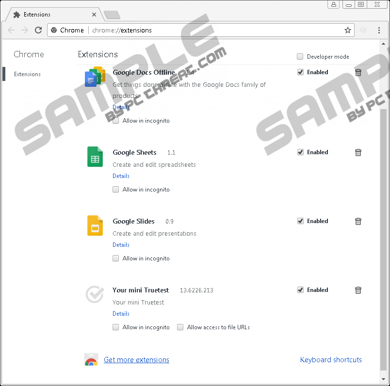 Your mini TruetestYour mini Truetest is a potentially unwanted program (PUP) that can also be identified as an advertising-supported program (adware). If you install it onto your browser – at this time, it appears to be compatible with Google Chrome only – it will start showing you suspicious advertisements, and clicking on them can be dangerous. The most peculiar thing about this threat is that it is not supported by any official information. You will not find a Privacy Policy, a License Agreement, or an EULA statement. Furthermore, there is no information representing the creator of this PUP/adware. The only piece of information is that the extension is offered by “serebryakov.leha90,” and that, of course, tells us nothing. Overall, there is too little information about this strange piece of software, and that is what makes it unpredictable and unreliable. Without a doubt, our recommendation is to remove Your mini Truetest, and if you want to learn more about this process, this article will give you some important information. An official page that would represent Your mini Truetest does not exist; however, its installer is available at chrome.google.com/webstore/detail/your-mini-truetest/icepgilpdfnecncejolijhnognpbgcgd. This is where the name of the creator (“serebryakov.leha90”) is revealed, along with a user count, which, at the time of research, was over 3,100. That is a shockingly high number because the extension does not offer services that are that attractive. According to the information – which, by the way, is represented in Russian – the add-on opens a mini-version of the site when you click on the extension icon that is attached to the browser. How does that look? When browsing the web, you can click the icon, and a list of ad-related sites will be shown to you. Is this useful? Of course, it is not, and, in fact, interacting with the ads shown by this potentially unwanted program could be risky. Advertisements can also be shown randomly as you surf the web, for example, in the bottom-right corner of the page. Refrain from clicking those as well. Since Your mini Truetest does not appear to be a useful program, it is unlikely that users choose to install it themselves. That means that it could slither in uninvited. Have you found this PUP installed without your permission? If that is the case, what other programs might be running without your permission as well? Install a legitimate malware scanner, and you will find that out soon. Hopefully, malware does not exist, and you can focus on deleting Your mini Truetest. If you do not get rid of this potentially unwanted program, you might be at risk of data theft. Since there is no official information, how can you know that this PUP is not collecting private information and then sending it to unknown parties? On top of all that, getting bombarded with random ads is annoying, and since they might act as security backdoors, we are sure you do not want to face them every time you try to browse the web. In case you already have interacted with suspicious ads, think if you might have gotten yourself into trouble (e.g., if you downloaded unfamiliar software or disclosed personal data). Although Your mini Truetest is a very suspicious and mysterious threat, its removal is not. As long as you can identify the extension and click the right button, you should be able to erase it manually. To make the process easier, we have added the instructions below. They also show how to erase cookies, which is what we strongly recommend doing. If you decide to delete Your mini Truetest manually, you probably want to eliminate the reaming threats in the same manner. Hopefully, you can find the guides you need on our website, but if you cannot, our research team is always ready to help. Just add a comment below. If multiple threats are found, you should do a quick research to get a general idea of whether or not you will be able to get rid of all of them yourself. If at least one threat is too serious or complicated, you probably will install an anti-malware tool, and if that is what you do, you can leave every malicious program and PUP alone as all threats will be erased automatically. Your mini Truetest Removal
