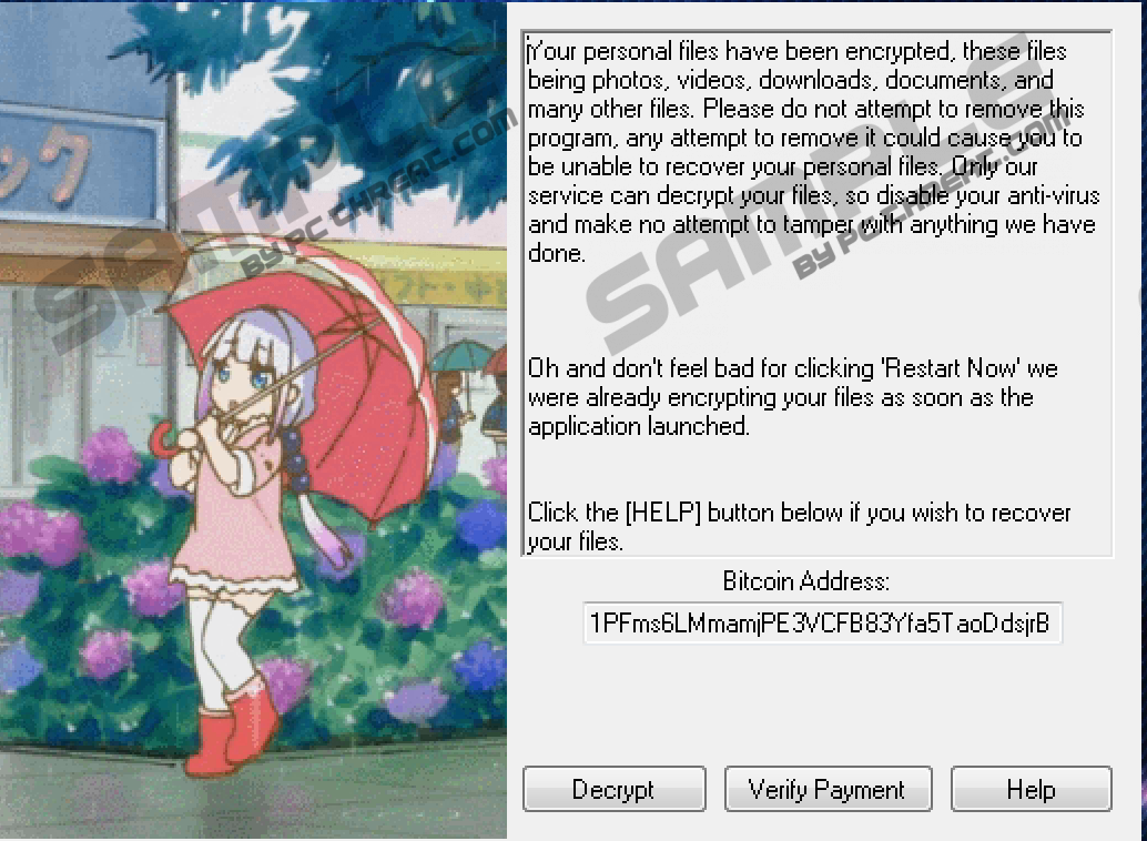 As you already know, FlatChestWare Ransomware starts working when a user clicks the Restart now button. The first activity this threat performs on the victim’s computer is the encryption of files. These files get a new extension .flat appended, and they can no longer be opened, so we are sure it becomes clear soon that malicious application has successfully entered the system. Of course, the ransomware infection itself does not leave users without telling them what has happened to their files either. It opens a window with a message on Desktop. It tells that all personal files, including photos, videos, downloads, and documents have been locked. Also, users are told that they can recover those files only by paying money for the decryption service. A smaller window opened on the screen provides more information about the payment users have to make to get files decrypted. Users are told that they have to pay $150 in Bitcoins to the provided BTC address and then click the Verify Payment button on the main ransomware window. Since you have no guarantees that files will be unlocked for you when you make a payment, you should not send a cent to the author of FlatChestWare Ransomware. It would be smarter to restore the encrypted data from a backup instead. If this threat has not removed the so-called Shadow Volume Copies of files, there is a slight possibility that some free data recovery tools could restore some of your files too, so if we were you, we would also try out all reliable tools available on the market. Do not have high hopes that you will get your files decrypted though.