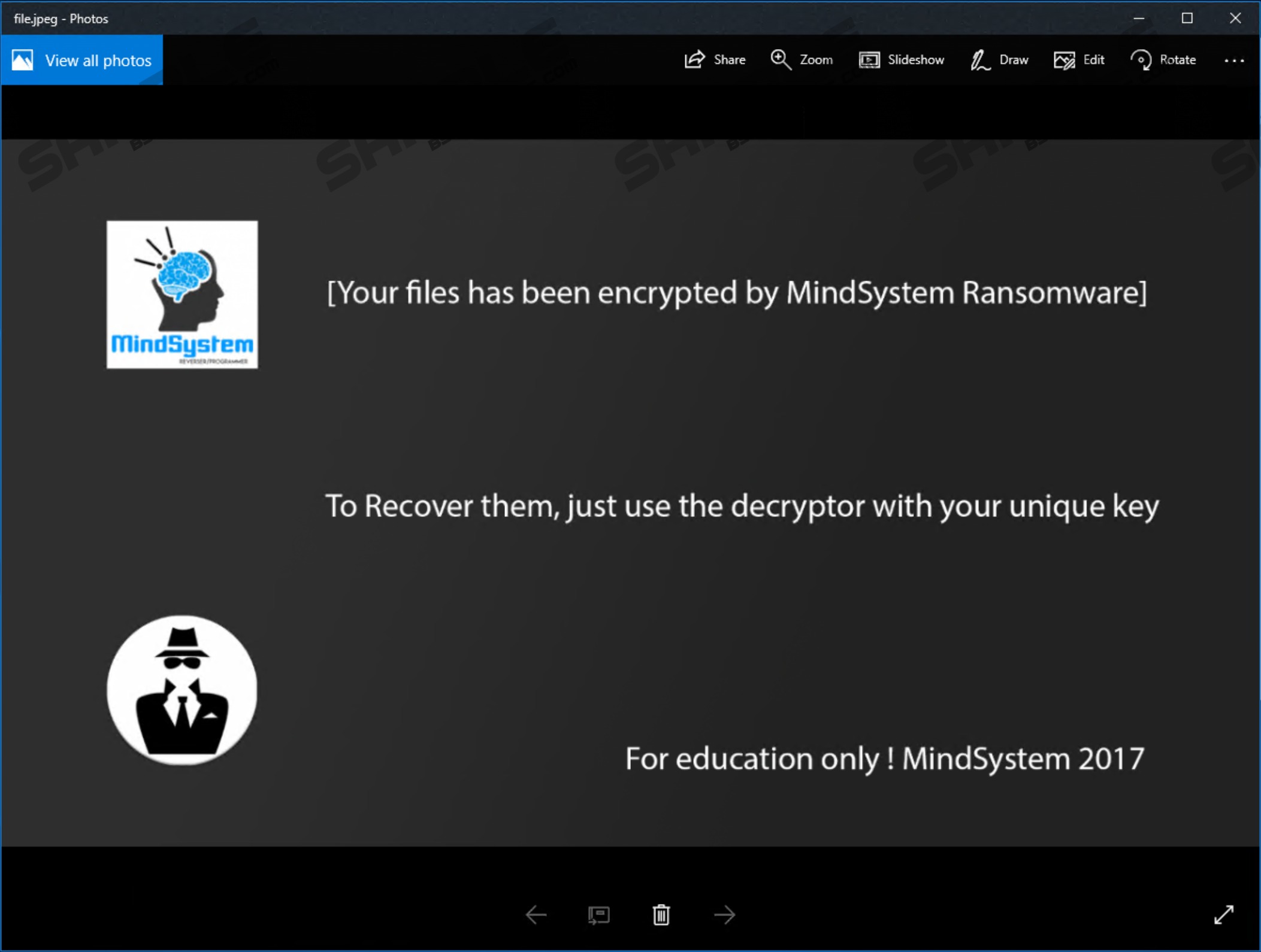 MindSystem RansomwareMindSystem Ransomware is probably one of the strangest ransomware application that we have encountered in the last few days. The malware’s presented ransom note claims it is only for educational purposes and so it does not ask to make any payments as other similar infections would most likely do. To our surprise, it might even drop a decryption key needed to restore its enciphered files. However, the problem is the malicious program does not provide a decryption tool to insert such a key. Thus, at least for the time being, it does not seem there is a way to unlock enciphered data. To make matters worse, MindSystem Ransomware could disable most essential computer tools to stop you from using it normally or deleting the infection. For more details, we urge you to review the article first, and if you want to have the control of your device back, you should also follow the instructions available at the end of this text. In truth, we do not know how widely MindSystem Ransomware could be distributed or if it is spread at all since there is not much information or reports about this threat yet. Nonetheless, we can tell you that often users receive such malware after clicking malicious pop-up ads, launching infected installers, installing fake software installers, etc. Moreover, a lot of ransomware applications are still being distributed through Spam emails; therefore, it is same important to be cautious with email attachments as it is crucial to be careful with files downloaded from unreliable web pages. Besides being more attentive, the user can guard his system against threats by installing a reliable antimalware tool too, so if you have not acquired it yet, it might be worth to consider such a tool. The way the application is now, it should encrypt all files located in the %USERPROFILE%\Desktop directory. Each of the enciphered files might be marked with .mind extension, for example, wallpaper.jpg.mind, text.docx.mind, and so on. If we compare, MindSystem Ransomware with other threats from the same category we must say it targets a rather small area, since other similar malicious applications could encrypt all files on the computer or at least all private files belonging to the user. What we are trying to say is that if you do not keep a lot of files on your Desktop, the damage done by this malware might be not so huge. What could appear to be even more horrible is the inability to access particular computer’s tools. Apparently, the malicious application disables them soon after it enters the system. Our researchers report, MindSystem Ransomware can disable the computer’s Task Manager, Registry Editor, Command Prompt (CMD), Explorer, Shut down button located on the Start menu, password change, etc. Many of these features can be enabled through the Registry Editor if you find particular paths and change specific values, but of course, to do this, you would need to be able to access Windows Registry First. Luckily, users can do so through a Windows feature called Group Policy settings. You should not worry if you have no idea how to use this tool as the instructions located below the text can guide you through the process. In fact, the removal steps can help you enable all other disabled features too and most importantly it will explain how to erase MindSystem Ransomware for good. Even though it could seem like the malware already did all the damage it was able to do; it might be not all. Our specialists say the malicious application might also work as a keylogger and so put your privacy at risk. For this reason, experts encourage users not to leave the threat unattended and get rid of it as fast as possible. One way to delete it is to follow the last part of the instructions available below this text. If it seems too complicated users could download a reliable antimalware tool instead and use its automatic features to both detect and remove the infection from the system. Enable Command Prompt (CMD) and Registry Editor