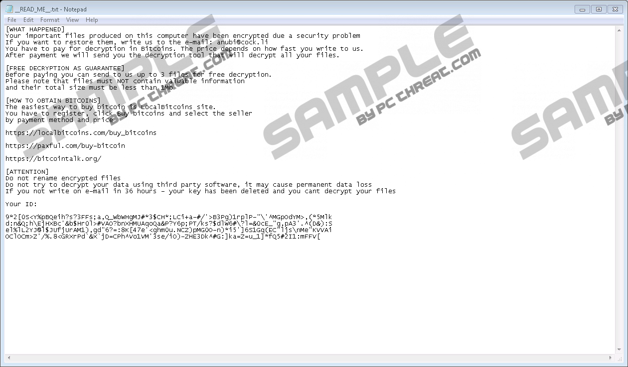 Anubi RansomwareIf Anubi Ransomware manages to crawl onto your system, you can be sure that your important files will be encrypted, which means that you may lose all of them if you do not have a recent backup copy somewhere safe. Nowadays people tend to use cloud storage to make backups, which is a great idea; however, some more sophisticated ransomware infections may be able to hack into such accounts and destroy your files there, too. Basically, the safest solution is still to have a removable drive that you only connect when backing up your files or copying them back after such a devastating attack like this one, for example. You are pushed to pay a ransom fee in order to get the decryption tool without which it is practically impossible to recover your files. However, there is never any guarantee that such cyber crooks will actually send anything to you other than another malware infection to extort even more money from you once you prove yourself willing to pay. We strongly recommend that your remove Anubi Ransomware immediately and then, you can transfer all your clean files back onto your hard disk. We cannot yet confirm the mostly used distribution method for this ransomware program but we can tell you some possible ways these cyber criminals may try to spread their vicious threat. The number one on our list is definitely spamming campaigns because that is one of the most widely used methods. If you have opened a mail recently that was regarding a supposed urgent matter like an unpaid invoice or an issue with your credit card details in connection with an online purchase or a booking, it is quite likely that this mail had an attachment, too. This attached file can look like an image or a text document. In the first case, it is the malicious executable itself that is activated the moment you click to view this file. In the second case, this document downloads the executable in the background after you enable macros in your endeavor to see the content of this file. It is obvious that you cannot delete Anubi Ransomware without your files being encrypted. This is why it is so crucial that you try to prevent it from entering your system in the first place. Another possibility is that you download a software crack or a serial key generator from a suspicious torrent page and instead of your targeted and promised file you end up with this dangerous ransomware program activated on your system. Yet another way for this infection to infiltrate your system is via remote desktop protocol (RDP) attacks, which requires you to have remote desktop software on your system that is configured weakly. But we cannot exclude the possibility of Exploit Kits as well that can take advantage of outdated browsers and drivers; therefore, it is vital that you keep your programs always up-to-date to prevent such malicious attacks from happening. Remember that you cannot remove Anubi Ransomware before it encrypts your files. Some users reported that this ransomware may operate through an executable called "%HOMEDRIVE%\locker.exe" but you can find out for sure if you check your registry for a value name called "Adobe Acrobat Optimizer x86" in "HKLM\SOFTWARE\Microsoft\Windows\CurrentVersion\Run" registry key. This is the point of execution this ransomware sets up after you launch the malicious file. Creating this registry entry makes sure that this malware infection starts up automatically every time you log in to your Windows and it will also encrypt all your newly created files. This infection uses an AES algorithm to encrypt your important files, including your photos, documents, archives, and .exe files as well. The encrypted file get a ".[anubi@cock.li].anubi" extension. The ransom note text file called "__READ_ME__.txt" is dropped in every affected folder. There is not detail in the ransom note regarding the amount you have to pay in Bitcoins but there is a suggestion that the sooner you pay, the cheaper you can get the decryption tool. You have to write an e-mail to "anubi@cock.li" for further details. We do not advise you to pay any money to these crooks because you cannot know for sure that they will send you the decryption tool or not. In fact, experience shows that most of the time such crooks simply disappear after they get your money. We advise you to act now and remove Anubi Ransomware from your system. It is not too complicated to eliminate this dangerous ransomware program. We have included instructions for you below so that you can manually take care of this threat if you want to. However, if you are an inexperienced user, you may prefer an automated tool to clean your system. Thus, we recommend that you install a reliable and reputable anti-malware program, such as SpyHunter. If you want to avoid similar threats, you need to stay away from suspicious websites and refrain from clicking on third-party ads. Also, it is important that you update all your programs frequently. How to remove Anubi Ransomware from Windows