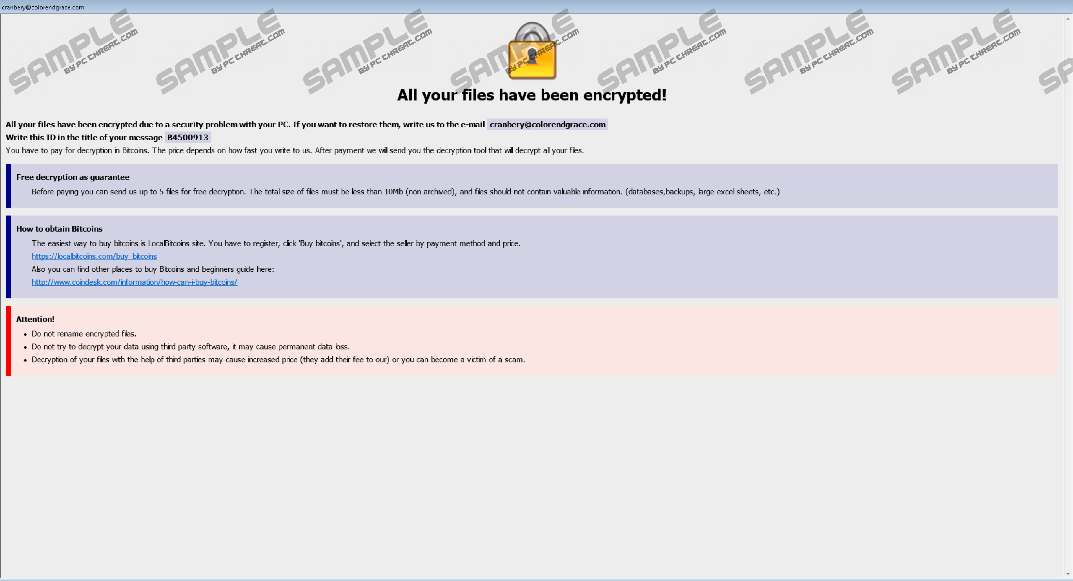 Cobra RansomwareCorrupted spam email attachments and unsecure RDP configurations can help the creator of Cobra Ransomware to drop it onto your computer without you suspecting a threat. This infection has been found to be a new version of the malicious Crysis Ransomware; however, since this well-known threat is far more sophisticated, it is highly unlikely that the same people stand behind both of them. All in all, both are dangerous, and both require elimination. The guide you can see below shows how to remove Cobra Ransomware from the Windows operating system manually, and you can learn more about the predecessor in a different report. While you might be tempted to delete the malicious file-encryptor right away, it is advised that you read the report to learn more about it first. This report discusses everything from the execution of the infection to the demands that cyber criminals have for their victims. If you have questions that are not answered in this report, use the comments section below to start a conversation. When the devious Cobra Ransomware slithers in, it immediately deletes shadow volume copies so that recovering files would be impossible. Then, it encrypts files and attaches a unique extension to all of their names, .id-.[cranbery@colorendgrace.com].cobra. As you can guess, this is where the name of the threat comes from. Unfortunately, once the files are encrypted, there is nothing you can do to decrypt them. The only thing that can help you is a decryption/private key, and there is no way for you to get it. Of course, the creator of Cobra Ransomware wants you to believe that there is something you can do about all of this. And we are sure that you want to do something about the encrypted files because the malicious threat can encrypt all kinds of files, and if they are not backed up, you might have to say goodbye to highly valuable personal files. On top of that, the infection is capable of encrypting software files as well, and that can prevent you from using your PC in a normal manner. There are two different ransom note files that Cobra Ransomware creates. The first one is created on the Desktop, and it is called “encrypted!!.txt”. This file informs that you can decrypt your files only by contacting cranbery@colorendgrace.com. The second ransom file is called “info.hta”, and you should find it in the startup location. The message represented within this file is far more extensive, and there is more information about the whole situation. The message mentions the same email address, and it also, for the first time, informs that a price will need to be paid for a “decryption key.” The message also provides you with information on how to purchase Bitcoins, which is the currency that the ransom must be paid in. Opening the ransom files is not dangerous because they are not malicious, but paying attention to the information presented via them can be dangerous. It is not recommended that you communicate with the creator of Cobra Ransomware or pay the ransom because a decryption tool would not be offered for you in return. So, instead, focus on removing this malware. According to our research, the malicious Cobra Ransomware might create one or two copies of itself in the startup location. These files must be deleted along with the original file. Then, you need to erase the ransom note files, and the malicious ransomware will be gone for good. Of course, everything is easier said than done, and identifying malicious components can be tricky. That is nothing to worry about because manual removal is not obligatory. In fact, we recommend installing anti-malware software instead because it can guarantee the elimination of all existing threats, not just the ransomware. Furthermore, it can help you keep your operating system safe in the future. When it comes to your files, the chances are they are lost permanently. Of course, if they are backed up, you do not need to worry about the corrupted copies because you have backups. If you end up losing your files, make sure you start backing new files in the future because that is the surest way to keep them safe. Cobra Ransomware Removal
