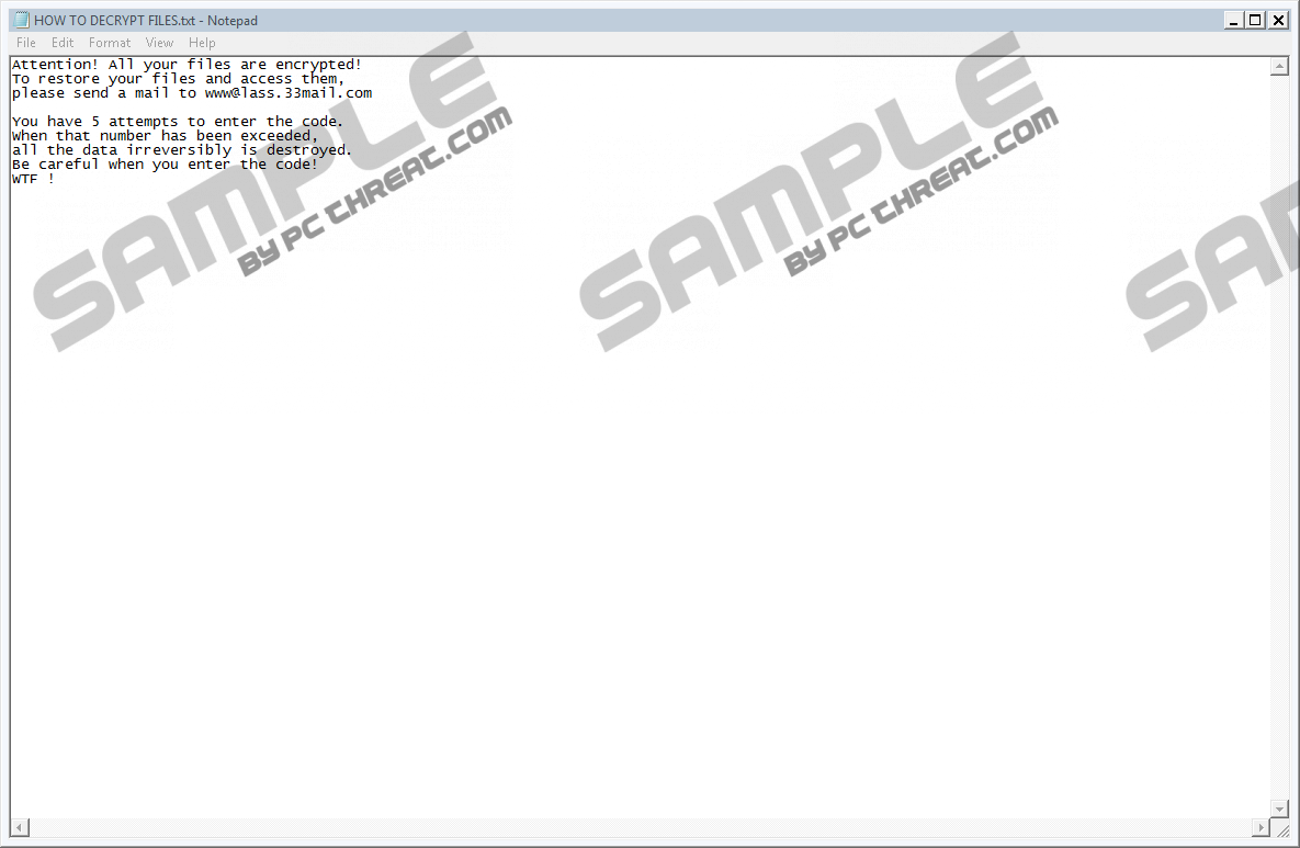 Cryptedx RansomwareCryptedx Ransomware is a new threat that can encrypt your files and thus render them unusable. Although this ransomware can encrypt most of your media files and more on your main drive, it is possible that you have a way out. We have found that this new malware infection is based on the notorious Xorist Ransomware just like Hello Ransomware and SevenDays Ransomware. Our research shows that you may be in the luck though. As a matter of fact, you may be able to use the free Xorist decryption tool, which was made available by malware hunters. But we do not advise you to try to search the web for this tool or use it yourself, either, unless you are an advanced user. If you do not have any IT savvy friends, you may want to take your PC to a professional to help you out with this infection. It is important that you do not remove Cryptedx Ransomware from your system until you decrypt your files. Otherwise, you may have to say goodbye to them for good. Of course, it is also possible that you have a recent backup stored on a removable drive, which you can use now to transfer back. There are a couple of ways for such a ransomware to infiltrate your system. Some of these, unfortunately, require your clicks, too. For example, you may receive a spam e-mail that has an attachment, which may look like an image or text document file. You may open such a spam because you believe that it has important information for you. Why or how? Well, this spam may seem to come from the local authorities or famous companies for starters. Then, the subject line can also lead you to believe that you are dealing with an urgent matter. This can be anything that most people may relate to, such as an unpaid speeding ticket or parking fine, an unsettled invoice, a problematic online booking, and so on. Finding such a mail, even if in your spam folder, would make anyone want to see this alleged information. However, when you open this mail, you will find no details but a link maybe forwarding you to a file storage place to download the supposed "proof" or some information regarding the attached file. The main goal of this spam is to push you to want to open this attachment since it is indeed that malicious executable. Obviously, once you view this file, you cannot delete Cryptedx Ransomware from your computer without possibly losing your files to encryption. It is only by sheer luck that this time you may be able to decrypt them using a free tool. This ransomware infection uses the TEA algorithm to encrypt your files. This threat targets your "%HOMEDRIVE%" and encrypts all files with these extensions: html, gif, wma, htm, jpg, bmp, tar, lnk, wav, 7z, txt, LNK, cer, wmv, zip, mp3, png, and etc. All the files that have been encrypted will get a ".cryptedx" extension. This infection also drops a text file called "HOW TO DECRYPT FILES.txt" in all affected folders, which contains the ransom note. Once the operations are finished, this ransomware displays an error dialog box with the ransom note. This note informs you that your files have been encrypted and you have to send an e-mail to "www@lass.33mail.com" in order to get further details about the ransom fee and how you can transfer it. This pop-up also warns you that you will have 5 attempts to enter the right password, or else, your files will be lost forever. If you click OK, another pop-up comes up where you can enter the password to get your files decrypted. We do not advise you to contact these criminals or to pay them any amount of money since there is no guarantee that you will be able to recover your files. The good news is that it seems that the free tool developed to decrypt the files encrypted by Xorist can also be used in this case possibly with success. After you manage to decrypt your files, although we do not recommend that you do this alone if you are not an experienced user, you can finally remove Cryptedx Ransomware from your PC. If you are ready to take action, you can use our guide below as a reference. It is important that you take this attack seriously even if it seems to be decryptable. It is possible that this is not the only threat on your system. What is more, it is quite possible that this is not the last time you may let such infections on board. This is why we recommend that you install a reliable anti-malware program, such as SpyHunter, which can automatically protect your PC against all known threats. How to remove Cryptedx Ransomware from Windows