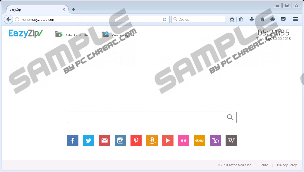 EasyZip New TabEasyZip New Tab is new Google Chrome browser extension that may pose a threat to your virtual security. This extension may sneak onto your system as a browser hijacker when installing suspicious software bundles, for example. This hijacker was created by the notorious Aztec Media Inc. who are also responsible for other unreliable products like My1tab Extension. While this tool may actually provide you with file unzipping and ZIP creating capabilities, its search engine should not be trusted at all. It is possible that this browser hijacker collects information about you and use it to target you with customized third-party advertising. This also means that you could be exposed to manipulated search results, which may contain unreliable ads and sponsored links leading to questionable or malicious websites. All in all, we think that you should remove EasyZip New Tab if you want to best for your computer. You can install this extension if you find its official page at lp.easyziptab.com. But this very simple page will simply redirect you after a few clicks to the Chrome web store page, chrome.google.com/webstore/detail/easyziptab/ecchijphnenjkihibanngcgodmhnbfpe. Based on the statistics there, you can see that over 26 thousand users have installed this tool in the past two weeks or so; yet, not a single one left a review. This does not usually mean that the extension is reliable and useful. But we understand if this is not enough for you to delete EasyZip New Tab. So, let us tell you more about it. Our research shows that this browser hijacker is also spread in questionable alternative ways. For example, you may click on corrupt third-party pop-up ads, such as fake downloaders and updaters, which could result in your installing this hijacker directly. What is definitely worse, you can also download this malware infection in bundled versions, where it could be packed with a number of potentially unwanted programs as well as malware infections like adware programs, fake alerts, and Trojans. This is why it is essential that you avoid landing on suspicious websites that may host unsafe content like fake buttons (download and navigational) and other types of third-party ads. Of course, it is also important that you refrain from clicking on third-party content in general unless you are absolutely sure that your PC is not infected and you are viewing a reputable and trustworthy site. We advise you to scan your PC with a reliable online malware scanner after you delete EasyZip New Tab. This browser hijacker changes your homepage and new tab by setting easyziptab.com/?sid=785&aid=0&src=nt. It seems that your default search engine is left untouched this time. This search page has more than just a search engine, it provides you with easy access to third-party websites where you can archive or unarchive your files. So you can unzip files and visit online.b1.org/online or create ZIP files and visit createzipfiles.com. These sites seems to work just fine, in all fairness. This search page also shows you the current time in the top-right corner as well as thumbnail links below the main search box. These links seem to work as well. However, this search engine forwards your searches to blpsearch.com first and only then to us.search.yahoo.com. This means that your results could be altered and contain promoted content, i.e., potentially unreliable affiliate advertising; this is how this browser hijacker can generate revenue. Unfortunately, it could be a mistake to click on any of the results as there is no way telling which one is trustworthy and which one may take you to a malicious website on a new tab or in a new browser window. If you do not wish to find out what might happen when you land on malicious pages, we recommend that you remove EasyZip New Tab as soon as possible. Finally, let us talk about solutions. We have prepared an easy-to-follow guide for you below this article so that you can manually take care of this annoying threat. Please note that this will not necessarily clean your computer of all infections and potential threats. If you do not want to eliminate all these potentially harmful programs one by one, risking the possibility of leaving leftovers on board, we advise you to use a reliable malware removal program like SpyHunter. Also, make sure that all your programs and drivers are regularly updated to avoid malicious attacks by cyber criminals trying to exploit outdated software bugs. How to remove EasyZip New Tab from your browserGoogle Chrome