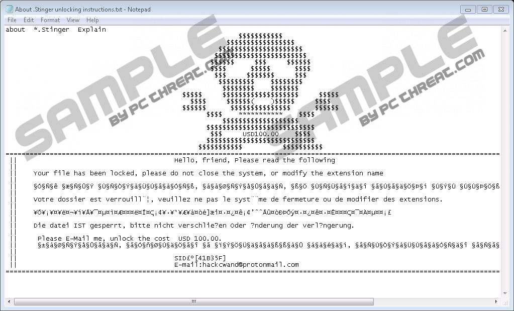 Stinger RansomwareIf you ever encounter an application known as Stinger Ransomware be sure to do everything that you can to avoid it because it happens to be an incredibly malicious application. If you are a user that is not familiar with programs of this classification, it is important to note that they are designed to encrypt vast quantities of data without requiring the user's consent. As you can imagine, having a program of this category could lead to devastating outcomes, to put it lightly. Malware researchers at our internal labs have conducted a thorough analysis of this ransomware. In this report, we present all the information gathered by them that is related to this malicious application's intricate inner workings. Also, we provide a few virtual security recommendations that will help you maintain a secure and clean operating system at all times. Finally, and most importantly, we include a detailed removal guide, which you should use to delete Stinger Ransomware if it is ever found up and running on your operating system. During the examination of Stinger Ransomware, malware researchers have noticed that this malware mainly attacks British, French, and German users. Even though that is the case at the moment, it is vital to note that there are no guarantees that users located elsewhere will not be affected by this malicious application. Thus, it is paramount to be aware of this program's existence at all times. The overall functionality of this ransomware program closely resembles other applications of this classification. Once it gains successful access to your operating system, it immediately starts doing its dirty work. First, it identifies the contents of your hard drive. Once that is done, it starts an encryption procedure. Usually, this malware blindsides most users because it functions quickly and silently. In a matter of minutes, this ransomware can lock a massive amount of data stored on the affected computer. It is also important to note that each file is encrypted using a robust cipher known as AES-256, which means that manual decryption is out of the question. As soon as your data is locked, you will notice a ransom note, which will inform you that your files are no longer accessible. Also, it states that you must pay a ransom in return for decryption services. Under no circumstances abide by these requests since malware developers are in no way legally bound to unlock your data even if you pay up. It should be more than obvious that you must delete Stinger Ransomware at the very same instance that it is found up and running on your computer. Do so in just a few steps by following the instructions below. To have a clean and safe operating system at all times should be every computer user's utmost priority. Improve your overall virtual security by taking simple precautionary steps. First, our researchers urge users to practice safe browsing habits at all times. Doing so is critical because most malicious applications are spread using devious methods. We recommend refraining from all emails and email attachments that come your way from unknown third-parties because cyber crooks often use spam email campaigns for distribution purposes. Also, make sure to bypass all unauthorized download sites because they are infamous for being the primary source of bundled installers. Such files are dangerous because they are filled with tons of suspicious and in some cases even malicious applications. Furthermore, be sure to learn as much as you can about any program that you want to have on your personal computer. We urge users to do so because malware developers tend to use misleading and manipulative marketing tactics to trick unsuspecting Internet users into downloading and installing their invasive programs without knowing what they do. Last, but not least, be sure to install a reliable antimalware tool if you do not have one already. Such a tool is essential because it is designed to detect and delete any virtual security threat automatically. To remove Stinger Ransomware once and for all, be sure to follow the instructions below. It is essential to pay your utmost attention to every single step of a removal guide since a single mistake could result in an incomplete removal. If that happens, you might have to face devastating outcomes. For example, traces of Stinger Ransomware could be used to restore it silently. Furthermore, those leftovers might be enough for this malware to continue working. If you wish to be sure that the removal procedure of Stinger Ransomware has been successful, you need to recheck your entire operating system for anything associated with this malware, once you are done with the instructions below. How to remove Stinger Ransomware from your PC