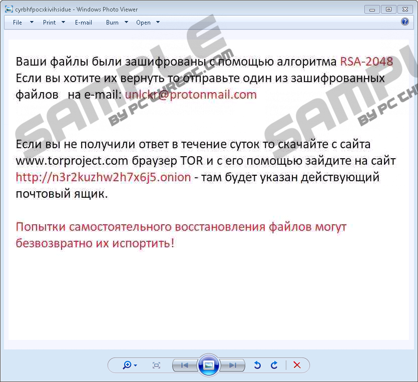 Gedantar RansomwareGedantar Ransomware may infiltrate your system and attack your precious files by taking them hostage. This vicious ransomware program can cause serious devastation on your system if you have infected it with a working version. It seems now that there could be a couple of versions on the web so it makes us assume that this threat could still be in a development state and doing trial runs. This ransomware seems to attack mostly Russian computer users, that is why the ransom note is in Russian, of course. Russian cyber criminals usually do not demand high fees but it is still not considered safe to contact them and pay them any amount of money. Such cyber crooks are more likely to attack you again with further threats than providing you with a decryption tool or key. Your only savior in this case is a recent backup of your files you may keep in cloud storage or on a portable drive. If you find out that this serious threat has managed to slither onto your system, it is important for you to also find out how it is possible. This is the only way for you to be able to avoid similar invasions in the future. One of the main distributions methods we have found for this ransomware is spamming campaigns. This simply means that these attackers send out thousands of spam emails to potential victims as bait. This email can be quite deceptive and you may actually believe that it is urgent or important for your to see the content. This spam may regard an issue with a FedEx parcel that could not be delivered for some reason, a parking fine you have not settled yet, suspicious transactions detected on your bank account, and the like. These are usually matters that would really matter to anyone really. This is why so many victims fall for this trick. But there is one important thing you need to keep in mind. When it comes to such a ransomware infection, most of the time, you cannot save your files from being encrypted. Even if you delete Gedantar Ransomware in the end, it does not mean that your files will be restored automatically. It is also important for us to mention other possible methods how you may infect your system with such a dangerous threat. For example, one common mistake inexperienced users may make is not to update their browsers and Java and Flash drivers regularly. This can give cyber criminals an opportunity to drop severe threats like this on your computer. How? They can use so-called Exploit Kits like RIG on malicious websites specifically designed for this. So when you click on an unsafe or corrupt third-party link or ad on a questionable website, it is possible that you get redirected to such a website. Before you know it, this ransomware can take all your important files hostage in the background. You will have no choice but remove Gedantar Ransomware and possible lose all your files to encryption. The working version of this ransomware program applies the RSA-2048 encryption algorithm to encode your files. Obviously, this threat targets your personal files like photos, documents, archives, and databases to strike your hard enough to make you want to pay for getting them back. This malware infections is not known to add a special extension; instead, it inserts eight random characters between the original name and extension. The ransom note is an image file with twenty random characters and may look something like this: "cyrbhfpocxkivihsidue.jpg." This ransom note is written in Russian language, so it is most likely that it only targets Russian speakers in post Soviet countries like Belarus, the Ukraine, and Russia. You can send a file to "unlckr@protonmail.com" to get it decrypted for free as proof. Then, you are supposed to visit a Tor website for more information. We believe that it is always risky to write to such criminals or pay them money. If you do not want to lose your money or be threatened with the deletion of your files if you do not pay more, we recommend that you remove Gedantar Ransomware as soon as possible. Finally, it is time to say goodbye to your attackers. We have included our guide, our solution to your severe system security issue. If you follow these steps below, you can hopefully eliminate this dangerous ransomware infection without a trace. It is possible though that this threat, no matter how dangerous it is, may not be the only one on your system. You simply may not be able to keep your computer secure due to some careless browsing habits and so on. Therefore, we suggest that you employ a reliable anti-malware program, such as SpyHunter, to automatically take care of all your system security issues now and in the future, too. Remove Gedantar Ransomware from Windows