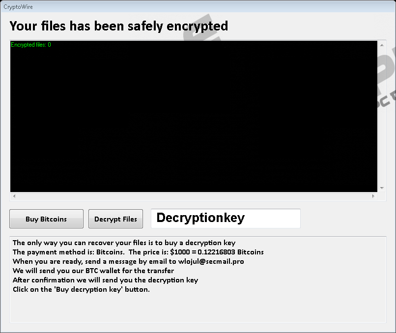 wlojul@secmail.pro RansomwareMalware experts working at our internal labs have discovered yet another ransomware application, which goes by the name of wlojul@secmail.pro Ransomware. The malware in questions is currently roaming the web, which means that you must be aware of its existence at all times. If you are not familiar with applications of this category, it is crucial to note that they are designed to encrypt vast quantities of data without requiring any authorization. As a consequence of having this malware active on your PC, quite a few of your applications will no longer function. To educate yourself about this malicious program's functionality, be sure to read the rest of this report. Besides such information we present a few virtual security recommendations, which will help you maintain a clean and safe operating system at all times. To help you delete wlojul@secmail.pro Ransomware, we include a comprehensive removal guide, which you can find below. Since there are tons of ransomware programs roaming the web these days, it is quite natural that most of them function in a relatively similar manner. Wlojul@secmail.pro Ransomware is not an exception. Once it enters your operating system, it immediately starts doing its dirty work. Unfortunately, this malicious application blindsides most users because it works silently and quickly. First, it determines the contents of your hard drive. Right after that, this ransomware starts the encryption procedure, which is over in a matter of minutes. During encryption, it locks your data with a powerful algorithm, which means that manual decryption is not a viable option to regain access to the affected files. As mentioned, quite a few of your programs will cease to work because data needed for their functionality will be inaccessible. Also, this malicious piece of software issues a list of files that it has affected. Besides all of that, you will notice a ransom note on your desktop. It informs you that your data is no longer accessible and that you must pay a ransom in return for decryption services. You are urged to pay $1000 using Bitcoin. Even though it might seem like a way to restore your data, it is crucial to note that developers' of this malware are not obligated legally to unlock the affected files. It should be self-evident that you must remove wlojul@secmail.pro Ransomware as soon as it is found up and running on your PC. Use the instructions below to terminate it without encountering any major problems. If you consider yourself to be a security-conscious user, who wants to have a clean and secure operating system, you need to take a few precautionary steps. It is essential to note the benefits of safe browsing habits. By refraining from all unauthorized download sites, you will significantly lower the risk of encountering bundled installers. Make sure to obtain all of your software from its official developers' websites only. Likewise, you should bypass all emails and email attachments that come your way from unknown third-parties. Our researchers recommend doing so because malware developers are known to use spam email campaigns for distributions services. Furthermore, you must find out as much as you can about any application that you want to have up and running on your operating system because malware developers tend to use misleading marketing tactics to trick naive Internet users into downloading their devious programs without knowing what they do. Finally, and most importantly, be sure to install a reliable antimalware tool if you do not have one already. Such a tool is paramount because it is designed to identify and remove any virtual security threat automatically. By taking these preventative measures, you will make your operating system virtually unbreakable. Remove wlojul@secmail.pro Ransomware without any hesitation. Do so by using the instructions that we present below. Be sure to execute each step with precision, and keep in mind that a single mistake could result in an incomplete removal. If that happens, you might have to face undesirable outcomes. For instance, just a few traces of this invasive application could be enough for it to continue working. In other situations, those leftovers might trigger a restoration procedure of wlojul@secmail.pro Ransomware. If you wish to be sure that the removal process has been successful, you need to double-check your entire operating system as soon as you are done with the instructions below. If you find such analysis a bit too complicated, you can scan your operating system as a whole with a professional antimalware tool since it can identify and remove anything associated with wlojul@secmail.pro Ransomware automatically. How to remove wlojul@secmail.pro Ransomware from your computer