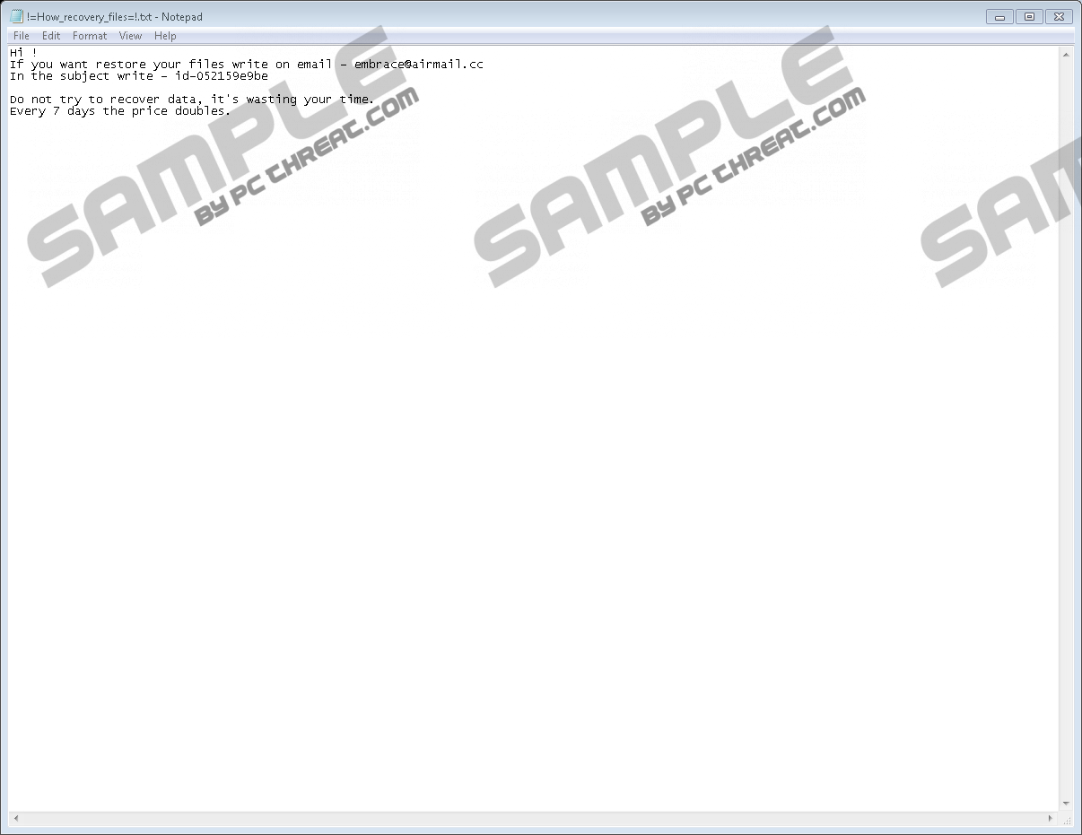 Embrace RansomwareEmbrace Ransomware is not the kind of infection you could ever embrace. That is because it is out to hit you in the most vulnerable spot – your personal files. Do you have photos or documents you value very much? If you do, we are sure you do not want to lose them, but if the malicious ransomware slithers in, your files will be corrupted by encoding file data with the help of an encryptor. To restore the files, you would need a decryption key, and, of course, you cannot just download one, and cyber criminals will not just send you the key without getting anything in return. Speaking of that, cyber criminals might suggest that a payment could help you obtain a decryptor and recover data, but you must not trust them. By paying the ransom, you are most likely to lose money, and, depending on the size of the ransom, this might be a huge risk. So, what should you do about the decryption of your files, and what should you do to remove Embrace Ransomware? These questions are answered in the report. The suspicious Embrace Ransomware is very similar to an infection we have discussed already – Everbe Ransomware (also known as Everbe@airmail.cc Ransomware). Were these two threats created by the same malicious party? Everything is possible. Unsecure RDP channels are often exploited when it comes to the distribution of this kind of malware, but there are tons of other methods that cyber crooks can employ to execute the infection successfully. Once executed, Embrace Ransomware immediately encrypts personal files, and it adds the “.[embrace@airmail.cc].embrace” extension to their names once it is done to help you spot which ones were affected. You might have discovered already that you cannot open these files as per normal, and that is because you need to apply a decryption key to restore them. The creator of the malicious ransomware is quick to introduce you to a file that carries a ransom note. This file is called “!=How_recovery_files=!.txt,” and it is perfectly safe for you to open it. Just do not forget to delete every single copy when you get to the removal part. The message delivered via the TXT file informs that you must email embrace@airmail.cc if you want to restore files. It is suggested that if you send a special ID code within seven days, you will need to a pay some kind of a ransom. After seven days, the sum should, allegedly, double up. Since we do not know what the original asking price for a decryptor is, we cannot confirm if it goes up in a week. It could be just a scare tactic by Embrace Ransomware to make you pay the ransom as soon as possible. As we discussed already, paying the ransom is not such a great idea as there is a possibility that you would be losing money without gaining anything. Have you been looking into third-party decryption tools? Those exist, but they rarely can aid those dealing with ransomware. Of course, if you find a tool that allegedly can free your files, make sure you research it thoroughly before installing it because the last thing you want is to install more threats that you would need to remove. In a different scenario, your personal files are backed up and safe, and you can delete the corrupted files without remorse. Do you know what you want to do about Embrace Ransomware? Hopefully, you understand how important it is for you to remove this malware from your operating system. Of course, if you are still not sure whether you want to take the risk of paying a ransom, you might be choosing to postpone the removal, but we advise that you do not think for too long. Deleting Embrace Ransomware can be very easy if you know where the launcher .exe file is. If you do not know this, it might be more convenient and beneficial for you to install anti-malware software. Taking into consideration that this software can also ensure full-time protection, installing it might truly be best. If you are not sure what you should do, post a comment below, and we will try to help you ASAP. Embrace Ransomware Removal