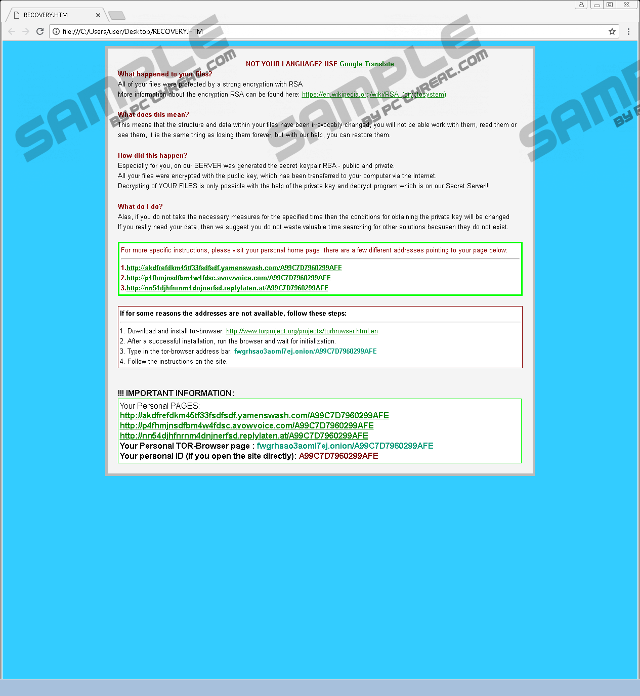 RSA-4096 RansomwareRSA-4096 Ransomware might seem like a unique infection, but, in fact, it is identical to a well-known threat, TeslaCrypt Ransomware. We have already shown how to delete this threat via a report that was created after analyzing it. This report, of course, analyzes the newest variant. Just like all other threats from the same family, this infection can exploit security vulnerabilities and backdoors to slither into Windows operating system without being recognized or even noticed. In some cases, the threat could be downloaded by other infections or dropped using unauthorized remote access to the system silently. In other cases, victims themselves could execute the infection by opening spam email attachments, downloading unfamiliar software, or interacting with malicious links. In any case, if the threat manages to slither into the system, it can quickly encrypt files using the RSA-4096 key, and that is why this threat is named like that. Without a doubt, you need to remove RSA-4096 Ransomware, and if you have no clue how to do it, you should continue reading. Whether you recognize the infection as RSA-4096 Ransomware or TeslaCrypt Ransomware, there are several different variants of this malware that you might be dealing with. Popularly, these are usually known by the names Teslacrypt.A, Teslacrypt.B, Teslacrypt.C, Teslacrypt 1.0, Teslacrypt 2.0, and so on. The variants of this malware can be distinguished by the unique extensions that are added to the encrypted files. Some of these extensions are “.mp3,” “.micro,” “.ttt,” and “.xxx”. In all cases, removing the added extension does not solve the problem. If your personal files are encrypted, there is nothing that can help you but a decryptor, and it is in the hands of cyber criminals. The creator of RSA-4096 Ransomware introduces the victims to the “private key and decrypt program” via a ransom note file that is created in every single affected folder. Different types of files can be used to deliver the random note, but the contents do not change. Recovery+[5 random characters].html, Recovery+[5 random characters].png, and Recovery+[5 random characters].txt are the names of the ransom note files. Once you read the message and initiate the removal of the ransomware, you have to eliminate these files as well. The ransom message of RSA-4096 Ransomware does not actually present useful information. To get more details, you need to visit one of the linked pages, where you are introduced to the actual demands of paying the ransom. This is why the threat is classified as “ransomware.” Now, whether or not you pay the ransom is completely up to you, but if you want our advice, we do not recommend it. Sure, this might be the only option anyone can offer you to recover files, but if you believe that an option offered by cyber criminals is trustworthy, you could be sadly mistaken. Therefore, even if you pay the ransom, you could end up in the same place; however, besides losing personal files, you would also lose your money. If the ransom is big, this would be a huge loss. Are your files backed up online or on external drives? If they are, you are in luck because that is the only solution to this problem. If backup copies exist, you do not even need to worry about the original files being encrypted. In this case, you can easily remove the corrupted files. It does not take impressive skill or experience to successfully delete RSA-4096 Ransomware from the operating system. Unfortunately, you cannot save your personal files by eliminating this threat, which is exactly why its creator did not hide it better. Of course, even if all of your personal files are corrupted, you still need to remove the infection because you want to start fresh, and if backups exist, you might even transfer copies of personal files back onto your computer. Hopefully, you have the ability to do that. If you can manually remove RSA-4096 Ransomware, go ahead to take care of this infection immediately. If you are not sure what you are doing, install anti-malware software. It will find and erase all malicious files and components automatically. You will need to install this software to keep your system protected anyway, and so you might as well do it now. RSA-4096 Ransomware Removal