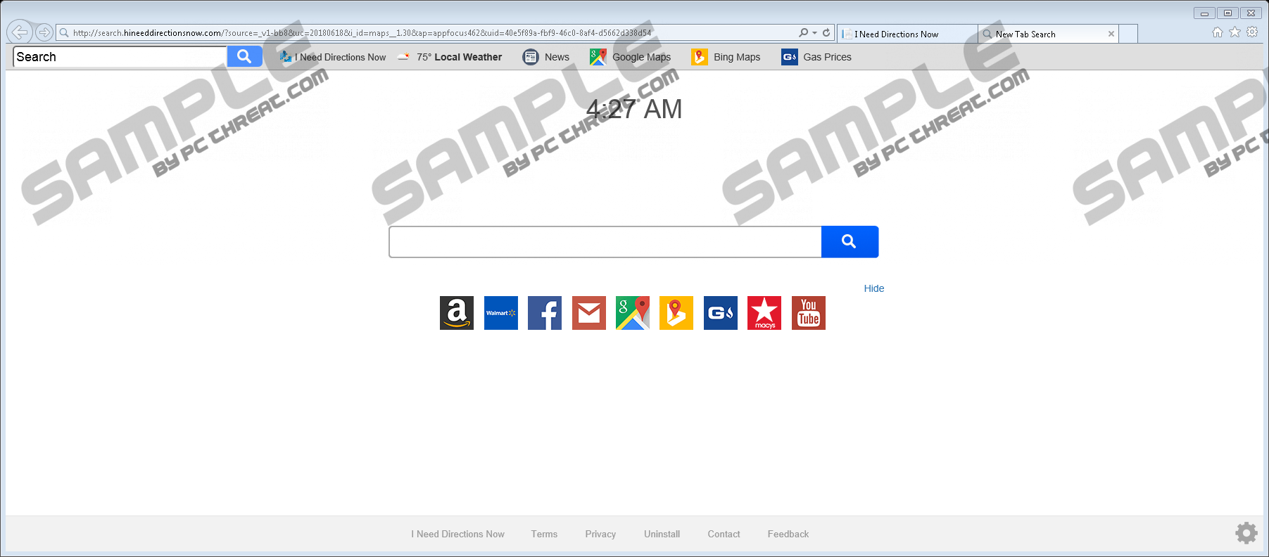 I Need Directions NowIf you have downloaded an extension called I Need Directions Now, it is likely that the homepage, New Tab, and search provider on your browser were replaced with Search.hineeddirectionsnow.com. At the time of research, the extension was compatible with Internet Explorer and Mozilla Firefox browsers only, but it seems like it should work on Google Chrome as well. Most likely, the installer on the Chrome webstore was taken down, and that is why Chrome users cannot acquire this add-on. This is good news because the fewer users can acquire this potentially unwanted program (PUP), the better. At first sight, it might seem pretty great, but our research team warns that deleting this extension – or uninstalling an application if you use Internet Explorer – is the best move. Why is that so? You will need to continue reading this report to find out, but if you need no further information, and you have already decided that you want to remove I Need Directions Now, you can scroll down to find a comprehensive guide. Have you downloaded I Need Directions Now from ineeddirectionsnow.com? This is the official download page, and you might have acquired the extension thinking that it can help you access maps and driving directions. You might have been attracted by the extension/application even if it was introduced to you via a third-party installer. Trusting unfamiliar installers that carry software bundles is not a good idea because you do not want to let in malware. I Need Directions Now is not a trustworthy tool, but there certainly could be much more malicious infections out there. So, if you have downloaded the PUP along with other extensions or programs, immediately install a trusted malware scanner to examine your system and warn you if you need to delete malware. Hopefully, there is nothing for you to worry about, but if anything malicious is found, we suggest removing it ASAP. You should scan your operating system regardless of whether or not you acquired the PUP from its official download site. We have the same advice to those whose browsers are taken over by Search.searchefc.com, Search.heasysportsaccess.com, and various other hijackers created by Polarity Technologies Ltd. This is the creator of the PUP as well. It would be unjust to call I Need Directions Now a completely useless piece. Once installed, it displays a toolbar with access to Google Maps, Bing Maps, as well as Gas Prices at geico.com. Although the links to these services are legitimate, and you can interact with them without any issues, you need to rethink if the PUP is beneficial. It promised you to help you navigate, and it cannot really do that. Besides that, you also must consider the fact that this PUP acts as a redirector. When you enter keywords into the search field, you are redirected to Yahoo Search, and this is bad because the results can be modified, and the results can include sponsored and potentially misleading content. This questionable search service is one of the main reasons we recommend deleting I Need Directions Now. You should also think about the hijacker’s/PUP’s ability to record information about you. Are you okay with a suspicious company recording your browsing history, interaction with websites and advertisements, and other kinds of information? If you are not, you should remove the potentially unwanted program immediately. If I Need Directions Now was installed along with other threats, you need a lot to think about, and the removal process can be quite overwhelming. In this situation, we recommend employing a trustworthy anti-malware program because it can automatically erase all existing threats. Of course, if you want, you can remove I Need Directions Now manually as well. The instructions below show how to uninstall an application representing the Internet Explorer extension, as well as how to erase unwanted Firefox and Chrome extensions. Note that if the homepage and default search provider remain hijacked, you might have to modify them manually. If you are not familiar with the process, we add instructions on how to do it manually as well. If there is anything else you would like to discuss, do not hesitate to start a conversation in the comments section. I Need Directions Now RemovalInternet Explorer