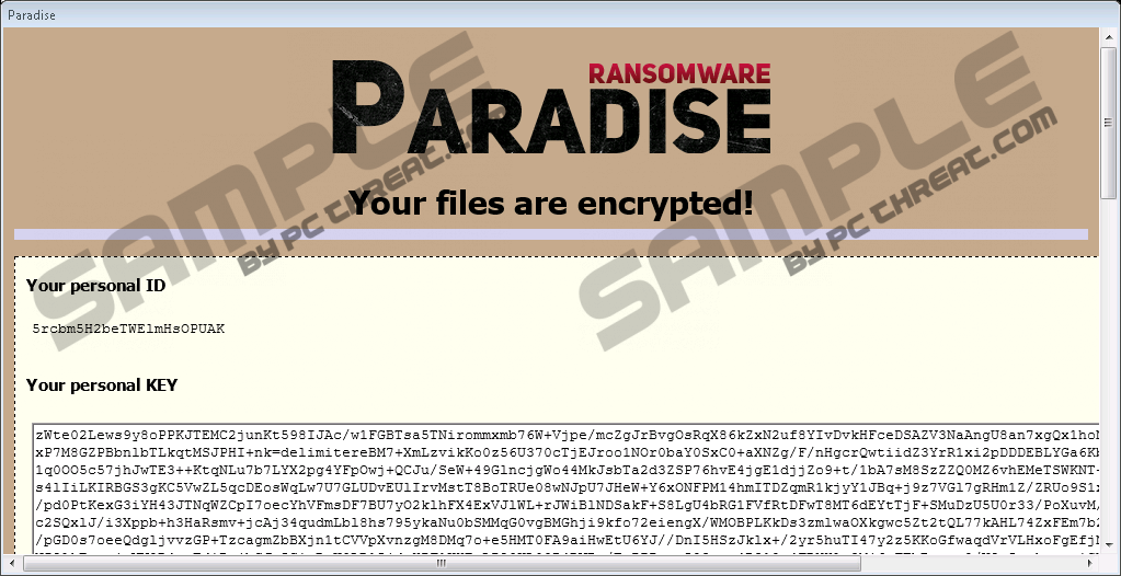 help@badfail.info RansomwareSpecialists at pcthreat.com have discovered a new infection help@badfail.info Ransomware spreading through the web; however, it has turned out that it is not exactly a brand new threat. Research conducted by specialists has clearly shown that this ransomware infection is a new variant of Paradise Ransomware analyzed some time ago. It does not differ much from the original infection. Once this threat slithers onto computers, it scans the system to find valuable files and then encrypts them all without mercy. Researchers say that help@badfail.info Ransomware locks pictures, documents, music, videos, and many other files on affected computers. It does not try to make the computer unusable – it does not lock any system files. The ransomware infection must be removed completely as soon as possible no matter what files you have found encrypted on your system. No, you will not unlock any of them by deleting help@badfail.info Ransomware; however, you will prevent this ransomware infection from locking more files on your PC. There is no doubt that your files have been encrypted by help@badfail.info Ransomware if they have a new extension _V.0.0.0.1{help@badfail.info}.paradise, for example, picture.jpg_V.0.0.0.1{help@badfail.info}.paradise appended to all of them. The ransomware infection starts searching for files and encrypting them immediately after it successfully slithers onto users’ computers, so you will soon find out about the successful entrance of this ransomware infection if you ever encounter it. Once files are locked, the ransomware infection opens a window on Desktop and drops a .txt file with instructions. Users are told to contact cyber criminals by dropping a message to one of the emails indicated in the ransom note (help@badfail.info OR help@badfail.info). If compared to the text file, the opened window contains more detailed information. You will also find two sentences proving that the decryption of files is not free there: “You have to pay for decryption in Bitcoins. The price depends on how fast you write to us.” Cyber criminals promise to decrypt 1-3 files for free to show victims that they are capable of doing this. You can send those files for the free decryption, but you should not send a cent to malicious software developers because they might release more infections locking users’ files in the future if they get what they want. You might be one of those unfortunate users who will encounter new threats. Of course, the main reason we do not recommend transferring money to cyber criminals is the fact that there are no guarantees that the decryption tool that can unlock encrypted files will be given to you. In other words, there is a huge possibility that you will pay for nothing. Researchers working at pcthreat.com do not have much information about the distribution of help@badfail.info Ransomware, but they are 100% sure that this threat slithers onto computers without the users’ knowledge. It does not mean that users cannot help this threat to enter their systems themselves by, for example, clicking on malicious links found on the web. Users also often end up with malicious software after they open attachments spam emails hold, so you should never go anywhere near these emails if you do not want to find harmful malware installed on your computer. Last but not least, it is very important that you never download software from dubious websites. Keep in mind there are plenty of websites that look completely harmless but might cause serious problems to you, so make sure you download applications from their official websites in the future. If you are not sure whether software you are about to download is trustworthy, you can always read other users’ reviews on the Web. help@badfail.info Ransomware does not drop any additional files, so its removal will be quick, even if you decide to erase it from your system manually. You will remove this infection fully by deleting the malicious file that launches it and a ransom note dropped on your computer. Before you go to delete malicious components, you might need to open Task Manager and kill the malicious process representing the ransomware infection to close the window opened on Desktop. This infection can also be fully deleted with an antimalware scanner. Without a doubt, it must be reliable! Delete help@badfail.info Ransomware