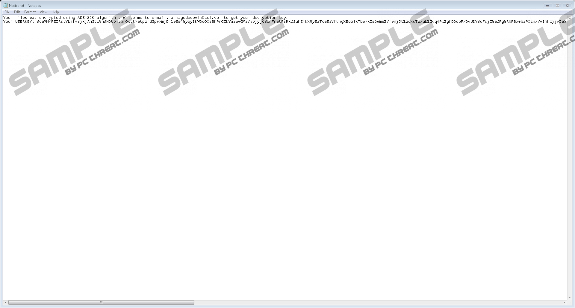 Armage RansomwareSome ransomware infections are more sophisticated than others, and Armage Ransomware cannot be viewed as a sophisticated threat. Once executed, it encrypts files and creates one single unique file that displays a few lines of text. This serves as the ransom note. Although the build of the infection is pretty simple and boring, it is a file encryptor nonetheless. That means that if it manages to invade your Windows operating system, it can corner you into following the demands set up by the creator. Unfortunately, some users might see no other option but to do this because they might want to restore their personal files. The bad news is that it is unlikely that files can be restored even if all demands are met. Even though the situation might be without a solution, there are things that you need to do if you face the malicious ransomware. Without a doubt, you need to remove Armage Ransomware. According to our research team, the main launcher of the ransomware should delete itself, but there are other components you might need to think about. Our research has extensive experience when it comes to ransomware. If you look at the most recent removal guides, you will find such names as Proticc Ransomware, Unlock92 Zipper Ransomware, Desu Ransomware, Cryptolite Ransomware, etc. All of these threats are unique, and they work in unique ways. For example, some can encrypt MBR to prevent the user from booting Windows, and others can lock the screen of the affected system and display an intimidating message that, allegedly, was sent by FBI or another reputable organization. Most file encryptors, however, are just as straightforward as Armage Ransomware. The first step for this malware is to enter the system, and it can do that using hidden files. These could be presented to users via spam emails or malicious downloaders. If the victim is tricked into executing the infection, it quickly encrypts files stored on the affected system. It should not encrypt system files, but photos, documents, videos, and similar files are likely to be affected. If they are, the “.armage” extension is appended to their names. You cannot restore the corrupted files by removing this Armage Ransomware extension. Everywhere where files are encrypted, a file named “Notice.txt” should be created. The text in the file reads: “Your files was encrypted using AES-256 algorithm. Write me to e-mail: armagedosevin@aol.com to get your decryption key.” If you email armagedosevin@aol.com, you will not get a decryptor. Instead, you will be asked to pay a ransom first, and that is something you should not do, even if the ransom appears to be small. This is not recommended because schemers are not known for keeping their promises or operating honest transactions. In fact, we do not even recommend emailing the creator of Armage Ransomware because you do not want a malicious party to record your email address. As discussed earlier, spam emails can be used to distribute malware, and so you want to avoid sharing your address with someone who has malicious intentions. After Armage Ransomware encrypts files and creates the ransom notes, it should delete itself, which, if you look on the bright side, can make the removal easier. You have to delete Armage Ransomware from your operating system as soon as possible. There should be no debate about that. Hopefully, the launcher is removed automatically after the attack is complete, but you want to make sure that is the case. Since it can be hard or even impossible to find malware manually, it is the smart thing to do to implement an anti-malware program. If there are any malicious components, they will be eliminated automatically. Anti-malware software can also ensure that malware cannot just enter your operating system, and that is exceptionally important because the last thing you want to deal with is yet another infection. If you have questions about the removal of Armage Ransomware for our research team, you can communicate with us using the comments section. It is open to anyone who wants to discuss the threat further. One last piece of advice: Back up your files! If they are backed up, you do not need to worry about getting files encrypted or losing them in other ways. Armage Ransomware Removal