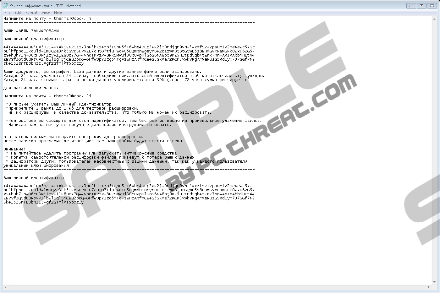 MVP RansomwareMVP Ransomware is an infection that you might encounter if you speak Russian. That means that your operating system’s language, your keyboard, and, probably, your geographical location must fit certain conditions. The infection could be silently spread via unsecure RDP channels, and smart spam emails could be used to trick you into executing it yourself. The emails should be presented in Russian too, and the misleading messages should be followed by malicious attachments or links that hide the launcher. Regardless of how the infection enters your operating system, it can be extremely damaging. The first task for the infection is to encrypt your personal files. Next, it has to deliver a message with very specific instructions and demands. After this, the ball is in the victim’s court. If you are considering taking the demands seriously, we have to warn you that you are unlikely to achieve anything. Instead of focusing on the decryption of files, you might need to focus on the removal of MVP Ransomware. As soon as our research team started inspecting MVP Ransomware, it became clear that this infection belongs to the Scarab Ransomware family. There are quite a few infections that come from it, including Scarab-Good Ransomware, Scarab-Glutton Ransomware, and Scarab-Deep Ransomware. In most cases, the name “Scarab” is included, but that is not a given. Not all of these threats are specifically targeted at Russian-speaking users either. Our researchers also found a version of Scarab-Bomber Ransomware that had this specific target. After successful execution, MVP Ransomware encrypts files, and, during the process, it also renames them (the names become jumbles of random characters) and adds the “.mvp” extension. After this, a file named “Как расшифровать файлы.TXT.” The original file might be placed along with the launcher, but it was found that copies are created in every folder that contains encrypted files. Even though these files are not malicious per se, we recommend deleting them once you read the message inside them. This is the easiest part of the removal process; however, eliminating the launcher of the malicious infection might be pretty straightforward too. We discuss that further in the report. The message that the attacker behind MVP Ransomware created and delivered via the TXT file informs straight away that files were encrypted, and so it becomes clear right away that malware is involved. The message suggests that 24 personal files can be deleted every 24 hours until files are decrypted. It also suggests that the cost of decryption can be increased by 30% every 24 hours until the 72-hour mark is reached. This is how you are informed that you would need to pay for some kind of decryptor, but there is no other information regarding the payment. You are simply asked to email a special ID in the message to thermal@cock.li, and once a few of your chosen files are decrypted for free, you would then need to pay. While we do not know exactly how much you would be asked to pay, we do not recommend paying even if it just 1 ruble. Cyber criminals do not care about you, and their promises to decrypt files are most likely to be fictitious. All they want is money, and they can promise you great things just to get it. Of course, it is your files that have been compromised, and you are the one making decisions. Deleting MVP Ransomware ransom notes is easy. Deleting the launcher might be too, but only if you know where to find it. So, where is it? The name could be random, or it could be misleading. Its location could be very random too. Basically, if you do not know the exact location, you might be unable to remove MVP Ransomware manually, but that is okay. You always have the option to install an anti-malware program that can erase the threat automatically. Should you invest in a tool just to have it clean your system? You should, but that is not all. It can also help you ensure reliable protection against malware in the future. If your system remains unguarded, other threats – including file-encrypting ransomware – could invade it, and you do not want it, do you? If your files were encrypted successfully, but backups do not exist, we do not have a solution for you. If backups exist, you still have your files, and you can transfer them onto the computer to replace the corrupted copies after you remove the ransomware. MVP Ransomware Removal