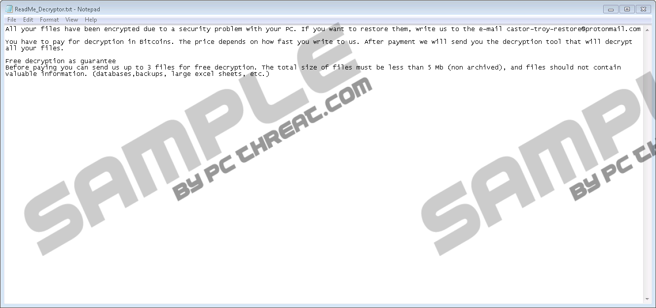 castor-troy-restore@protonmail.com RansomwareIt looks like DCRTR Ransomware has now a new version that is called castor-troy-restore@protonmail.com Ransomware. What victims should know about it is the malicious application does not erase itself after encrypting files. Unfortunately, it creates a copy of its launcher and a couple of Registry Entries to make the system launch it automatically after a restart. It means leaving the malware unattended might endanger files you could receive or create on the infected computer. Therefore, our researchers advise not to leave it unattended. The threat’s ransom note may threaten not to remove castor-troy-restore@protonmail.com Ransomware and demand to pay a ransom, but if you do not want to risk your savings, we would advise not to pay any attention to it. To learn more about this malicious application, you should keep reading this article and to eliminate it manually you could follow the instructions placed at the end of the text. If you wonder how castor-troy-restore@protonmail.com Ransomware enters the system, you should know there are a couple of possible distribution channels. For instance, it could be spread with malicious installation files offered on untrustworthy file-sharing web pages or with doubtful email attachments sent by unknown senders. Since researchers still do not know for sure, we would recommend being extra cautious with the mentioned content. If you need to obtain a software installer, it would be best to do so from a legitimate web page. As for email attachments, you should be extra cautious with each file that comes unexpectedly. In other words, users who care about their system’s safety should investigate the sender's email address to see if anything gives away it could be forged. Plus, to make sure the received material does not have harmful components you could scan it with a reliable antimalware tool. In case you made a mistake, and castor-troy-restore@protonmail.com Ransomware was able to settle in, you should see additional .[castor-troy-restore@protonmail.com].java extension at the end of your files’ titles, for example, picture.jpg.[castor-troy-restore@protonmail.com].java. It is placed to mark enciphered files so it would be easier to see the damage done to user’s data. Also, more experienced users, who investigate affected files more close should find a token called Marvel inside of each enciphered file. Before starting the encryption process, the malicious application is supposed to create a copy of itself (an executable file) also called Marvel in the %APPDATA% directory. To be able to launch itself automatically with the operating system, castor-troy-restore@protonmail.com Ransomware might create Registry entries named similarly (e.g., MarvelHost) in the HKCU\Software\Microsoft\Windows\CurrentVersion\Run and HKLM\SOFTWARE\Wow6432Node\Microsoft\Windows\CurrentVersion\Run directories. After the encryption process, the malicious application should create one more file called ReadMe_Decryptor.txt. The copies of it should appear on every directory containing files encrypted by castor-troy-restore@protonmail.com Ransomware (data with .[castor-troy-restore@protonmail.com].java extension). It is a ransom note, and as the title lets you guess, it contains instructions on how to pay a ransom. To tell the truth, the message does not explain how to make a payment as it only asks to write an email to hackers. Also, it mentions the price will depend on how fast the victim contacts them. Even though the note may claim you can decrypt a few files free of charge as a guarantee, keep it in mind there cannot be any guarantees as in most cases the hackers ask for payment first. Thus, who is to tell if they will deliver the decryption tools they mention in the ransom note. If you do not think the malware’s creators can be trusted and do not wish to fund them, we advise you to eliminate castor-troy-restore@protonmail.com Ransomware at once. Encrypted files can be restored afterward if you have any backup copies. To remove the threat manually, you should follow the instructions we placed a bit below this text. The other way to make sure the malicious application leaves your system is scanning it with a reliable antimalware tool. Just wait till the results with detections show up and then press the provided deletion button to get rid of them all. Remove castor-troy-restore@protonmail.com Ransomware