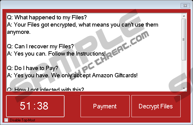 EbolaRnsmwr RansomwareEbolaRnsmwr Ransomware is most likely still in the development stage as the malicious application is designed to encrypt files located in a test folder. However, our researchers who tested it says it has rather nasty qualities that could make it a somewhat troublesome infection. For example, the threat disables the computer’s Task Manager to prevent the user from killing its process with the help of this tool. Therefore, if the malware ever gets finished, it would be useful to know about its effective manner, which is why we will discuss it in this article. Also, we will explain how to erase EbolaRnsmwr Ransomware manually, although users should keep it in mind the given instructions may not be accurate if the malware gets updated. Consequently, it might be best to remove it with a reliable antimalware tool. First things first, we should talk about how you could encounter a threat like EbolaRnsmwr Ransomware as we doubt the malware itself is being distributed as it might be still in the development stage. Such malicious applications usually reach victims via Spam emails, unreliable installers, and other doubtful data received from the Internet. Thus, if you want to keep your computer safe, you should be extra cautious when downloading or receiving files. It is best to avoid attachments coming from unknown senders, especially if you do not understand why they were sent to you or they raise suspicion. Also, if you do not want to ruin the fun of getting new software and tools, you should always obtain them only from legitimate web pages. Besides, it is crucial to check who developed the program and whether it does not have any negative reviews from experts/users. As an extra precaution, it is advisable to place a reliable antimalware tool that could help you identify potential threats and protect the computer from them. As we mentioned in the beginning, our tested version of EbolaRnsmwr Ransomware did not encrypt any files. Apparently, it is programmed to lock data located only in the %USERPROFILE%\Desktop\Test folder. After creating such a directory on our test computer and infecting it again, we noticed the malicious application enciphered files and added .101 extension at the end of their titles. For instance, a picture named sunflowers.jpg turned into sunflowers.jpg.101. Another change we noticed was the new wallpaper picture containing a message claiming the files on the device were encrypted and can no longer be opened. Moreover, the same message stated the victim has to pay with Amazon gift card to decrypt his files. Asking for payment in gift cards is nothing new as we have encountered such threats in the past. Still, we see such conditions less often as usually, hackers ask to pay in Bitcoins. Furthermore, it looks like the malicious application cannot encrypt a lot of different file types, although it is capable of locking al the main picture (e.g., .jpg and .png) and document (e.g., .doc, docx, .xls, etc.) formats. Another version of ransom note should be displayed on top of the victim’s screen as EbolaRnsmwr Ransomware opens a window with text in the form of questions and answers. Plus, there should be a timer to let the user know how much time he has to pay the ransom. Additionally, there are Payment and Decrypt Files button. What we should say is we would not recommend paying the ransom because even if the ransom note promises you will get your data back in reality there are no guarantees. The hackers can always change their mind, not to mention they may not have the tools needed to decrypt data as they claim or such tools could be lost (e.g., automatically deleted from the server). It seems to us the best option is to delete EbolaRnsmwr Ransomware and restore any files it could have encrypted while using backup copies you might keep on cloud storage or removable media devices. To clean the computer manually, you could try to complete the instructions located below this article. Nevertheless, as we aid earlier if the malicious application gets updated we cannot guarantee the instructors will still help you get rid of it because the new version could drop new data that is not listed in our steps. This is why it might be best to use a reliable antimalware tool. Eliminate EbolaRnsmwr Ransomware