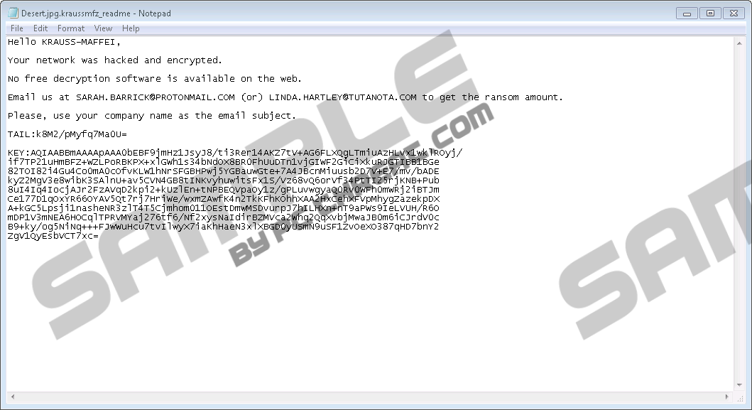 .kraussmfz Ransomware File Extension.kraussmfz Ransomware File Extension was created to attack an organization called KRAUSS-MAFFEI. Our researchers say there are most likely more malicious application’s alike created to attack different businesses. The goal is to extort money from companies that catch the infection. It is unknown how much the hackers might ask to pay as they do not mention any sums in ransom notes left on infected computers. Also, users should know that each version might be slightly different from another and in this article, we will mostly talk about .kraussmfz Ransomware File Extension. Further, we will explain how the malicious application might enter the system, how it works, and what the victim may need to do to get rid of it. At the end of the text, you can find instructions showing how to remove the malware step by step too. To begin with, we would like to explain how .kraussmfz Ransomware File Extension could enter the system. Our researchers suspect the malicious program could be spread through Spam emails. In other words, the hackers could send targeted companies infected email attachments. All the victim has to do is launch the file, and the computer could get infected right away. Thus, it is advisable not to rush opening data if you do not know where it comes from or why it was sent to you. It is best to scan the file in question with a reliable antimalware tool first. This way, you could find out whether it is malicious or not without putting your computer and files on it at risk. Additionally, our researchers advise being careful with data downloaded from the Internet, especially if it comes from unreliable file-sharing websites, questionable pop-ups or other advertisements, and so on. The first thing .kraussmfz Ransomware File Extension should do after it enters the computer is to create a couple of files that would ensure the malware restarts with the operating system. You can find the paths these files ought to appear in the removal instructions available at the end of this article. Later, the threat should start encrypting data that are not related to the operating system, such as various documents. In this case, all files should get a second extension called .kraussmfz. Naturally, if you encounter not .kraussmfz Ransomware File Extension, but a version that attacks a different company, the extension’s name would be just the same as the targeted organization’s title. What’s more, victims should notice a ransom note that may appear in each directory containing encrypted files. The text should be identical in all of the notes. It might start with a “hello” and a sentence saying: “Your network was hacked and encrypted” to explain the situation. Next, the victim should see the terms from the malware’s creators. They may ask to contact them via given email addresses. As the .kraussmfz Ransomware File Extension ransom note should explain, the reply from the hackers is supposed to tell how much the victim would have to pay to get decryption tools. Needless to say, we do not advise contacting them if you do not want to risk losing your money. The hackers can promise anything just to convince a victim to pay a ransom, but there are always situations when users get scammed. For those who do not want to put up with any demands and wish to continue using the infected device normally, we recommend erasing .kraussmfz Ransomware File Extension at once. The malicious program could be deleted manually by removing the data it created upon its installation. The instructions located below are here to help you find and remove such files. Another way to ensure the malware gets erased for good is to scan the computer with a reliable antimalware tool. Afterward, it should display a deletion button that ought to allow eliminate the ransomware and other potential threats at the same time. Remove .kraussmfz Ransomware File Extension
