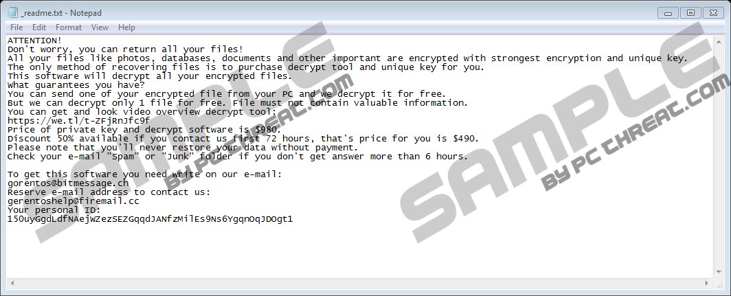 Meds RansomwareDo you know when and how Meds Ransomware entered your operating system? If you let this infection in by opening a spam email attachment or by downloading a software bundle, you might know exactly when this threat got in, and you might be able to tell where it landed. However, if the threat was downloaded by a Trojan or if remote attackers dropped it onto your computer without your permission using one of the exposed security loopholes, you might have a hard time understanding how or when this infection got in. Ultimately, it does not matter how it slithers in, and it is most important that you delete it before the files are encrypted. Unfortunately, most victims realize that they need to remove Meds Ransomware only after the files are encrypted. Is this the situation you are in? If it is, you should continue reading the report to learn how this malicious threat works and if you can restore your files. The STOP Ransomware family continues to grow, and now Nuksus Ransomware, Dutan Ransomware, Zatrov Ransomware, and hundreds of other malicious threats are joined by Meds Ransomware. It is likely that the same attacker is behind most of these infections because the ransom note that they deliver usually instruct the victim to email gorentos@bitmessage.ch or gerentoshelp@firemail.cc, and, of course, multiple attackers are unlikely to use the same email account. Before the ransom note is created – which, by the way, is represented using a file named “_readme.txt” – Meds Ransomware encrypts your personal files. The “.meds” extension is added to their names, and while you can easily rename the file and delete the extension, there is no point in doing that. If your personal files were encrypted, that means that their data was changed, and to change it back, you need a decryptor. Unfortunately, a legitimate decryptor that could help did not exist at the time of analysis, but the attackers were using the ransom note to offer victims their own decryptor. The ransom note that Meds Ransomware delivers is pretty generic. At first, it informs that personal files were encrypted. Then, it introduces the victim to a program (in this case, a “decryption tool”) that, allegedly, can restore the files. Finally, it introduces some conditions. Meds Ransomware instructs to pay a ransom of $980 (or $490 if paid within first three days) to have the decryptor sent to the victim. How do you pay this ransom? There is no information about that, but the attackers display the two email addresses we mentioned already, and you are suggested communicating with the attackers via them. That is the last thing you want to do because these attackers could scam you further if you exposed yourself to them. But what about your personal files? If you think that the criminals behind the infection would give you exactly what they promise in return for your money, you are naive. Of course, cybercriminals are unpredictable, but they almost never keep their promises or spend any time helping victims. Needless to say, we do not recommend paying the ransom under any circumstances. However, you are in control here, and you have to do what feels right for you. Thankfully, more and more people nowadays use backups to create copies of their personal files outside the original location. For the most part, that is done so that files could be accessed from any device. However, now people start to understand that backups also “insure” the files against malware that can try to corrupt or remove it. Unfortunately, Meds Ransomware is not the only threat capable of encrypting your personal files, and there are thousands of other threats alike that could stand in its place. Needless to say, creating backups for personal files is no longer an option. It is a necessity. Hopefully, you have backups, and you do not need to think about the decryption of the files corrupted by the threat. In both cases, we suggest focusing on deleting Meds Ransomware from your system. While some users might delete the infection manually without trouble, we advise implementing anti-malware software. It will automatically erase all infection sand, at the same time, reinstate Windows protection to minimize the chances of malicious threats slithering into your operating system again. Meds Ransomware Removal