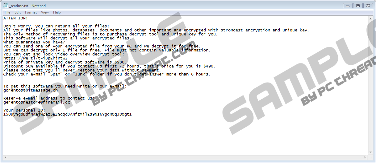 Noos RansomwareThe attackers behind Noos Ransomware do not care about your virtual security or your personal files. All they care about is successfully encrypting files so that they could demand money from you in return for software that, allegedly, would be able to restore them. Even though some victims of such malware give in and decide to fulfill the demands of cybercriminals, our research team warns that that is a terrible idea. First and foremost, the attackers are unlikely to free your files even if you do as told. Second, it appears that a free decryptor already exists, and there might be no reason to consider the ridiculous demands at all. We hope that you will be able to successfully restore your files, remove Noos Ransomware from your operating system, and also figure out a better way to protect yourself against malware overall. Please continue reading to learn more, and do not forget that the comments section below is open for further discussion. We must mention STOP Ransomware when discussing Noos Ransomware. This infection is the predecessor of Reco Ransomware, Boot Ransomware, Karl Ransomware, Kuub Ransomware, and multiple other threats that not only work and look the same but also appear to be controlled by the same attacker(s). In fact, the only difference between these infections is the extension that is added to the corrupted files. In our case, it is the “.noos” extension, and, as you can see, it also determines the name of the threat. Other than the original extension, Noos Ransomware and its clones are similar in the way they are spread across systems. For example, the launcher could be attached to misleading emails or bundled downloaders. Furthermore, they all encrypt personal files, after which they become unreadable. All of them create a text file named “_readme.txt,” and while it is safe to open it, the ultimate goal is to remove it. Of course, even if you remove the files created by ransomware or the extension appended to the files’ names, the encryption will prevail. The purpose of the .TXT file is to inform you what has happened as well as to guide your next moves. The message that was created by the Noos Ransomware developers is meant to convince you that you need to send one file and a special ID to gorentos@bitmessage.ch or gerentosrestore@firemail.cc (reserve email). Of course, if you did that, you would receive instructions telling you to pay a ransom in return for a decryption tool. As we have mentioned already, you are unlikely to obtain it regardless of what you do. The original ransom note informs that you need to pay $980, or $490 if you pay within 72 hours, to have a decryptor sent to you, but since there is no information about the method of payment, emailing the attackers appears to be a necessity. Of course, we do not recommend communicating with cybercriminals or paying the ransom at all because we believe that that would not result in successful decryption. A legitimate STOP Ransomware Decryptor should help you restore files for free, but if it does not, maybe backups exist? You want to have backups of all files because most ransomware infections are not decryptable. Since restoring files is unlikely to be possible, you want to have the option of replacing the corrupted files with backup copies. Now that you have several options to recover files, we are sure that you are ready to delete Noos Ransomware from your operating system. This malware should not be too hard to delete manually, but if you cannot detect the launcher, and if you want to secure your system, it is important that you consider employing anti-malware software. Even if you have no trouble removing Noos Ransomware manually, we still recommend installing anti-malware software because you need full-time protection against malware. You can be extra careful about the software you download or the emails you open, but cybercriminals will always find an inconspicuous way to drop infections, and anti-malware software is most likely to catch and delete it in time. If you want to talk to our researchers before you decide what to do next, post your questions in the comments box below, and we will get back to you as soon as possible. Noos Ransomware Removal