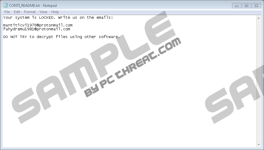 CONTI RansomwareYou might have let CONTI Ransomware in by accident, but that is not an accident you want to cause. That is because once this threat slithers into an operating system, it encrypts files, and once files are encrypted, they can no longer be read. Without a doubt, if your personal files are encrypted, you cannot just reinstall Windows to fix the situation. Removing CONTI Ransomware does not automatically restore your files either. So, what are you supposed to do? It seems like there is nothing you can do, but the attackers behind the infection want to make you think that there’s still hope. They want you to believe that you can recover your files by obtaining decryption software from cybercriminals. Hopefully, you understand already that trusting cybercriminals is a terrible idea, but if you do not know this yet, please continue reading the report to learn all about it. We also discuss how to delete the infection. So, if you are curious, read the report, and do not forget to add your questions to the comments section if you want them to be addressed by our research team. It is most likely that you downloaded an unreliable file or opened an unreliable spam email attachment if CONTI Ransomware has managed to slither in. Once inside the operating system, this malware encrypts files, and it also attaches the “.CONTI” extension to their names to help you recognize the scale of the attack. Next to the encrypted files, you should find a text file containing a message. When our research team analyzed CONTI Ransomware, two files were linked to the infection. One of them is called “HOW_TO_DECRYPT.txt,” and it seems to have been used for testing purposes only. The second text file is called “CONTI_README.txt,” and it contains the real message. According to it, all victims of the malicious ransomware have to email mantiticvi1976@protonmail.com and fahydremu1981@protonmail.com. There is no explanation as to what would happen if either of these email addresses was contacted, and so some victims might decide to send a message without thinking much about it. Well, if you decide to communicate with cybercriminals, you can expect to be exposed to new scams. First, however, you are likely to be pushed into paying a ransom in return for a decryptor. It is hard to say what exactly the attackers behind CONTI Ransomware would demand from victims, but it is likely that all they want is money. If the requested ransom is small enough for you to pay, you might consider this option. However, our research team does NOT recommend giving your money away to cybercriminals. They will definitely take your money, but it is unlikely that they will give you anything in return for it. Unfortunately, that is the harsh reality behind ransomware. Just like OnyxLocker Ransomware, Kodc Ransomware, HackdoorCrypt3r Ransomware, MonCrypt Ransomware, and thousands of other file-encrypting threats, CONTI Ransomware was created by cybercriminals who could not care less about their victims. Unfortunately, files cannot be restored without the decryptor that only the attackers seem to have. This does not mean that you should take the risk of paying the ransom. We hope that you can replace the corrupted files with backup copies that are stored outside the computer. If you do not have such copies, make sure you start backing up all personal files once you remove the infection. While it does not look like you can restore the files corrupted by CONTI Ransomware, we hope that you can replace them with copies stored outside the computer. First, of course, you want to remove the infection. Deleting CONTI Ransomware manually can be challenging, unless you know where the launcher file is. Do you know where this file is? If you do, follow the instructions below. If you do not, install a trusted and legitimate anti-malware program. It will automatically remove the infection and also reinforce Windows protection to keep other file-encryptors away. Of course, note that it is not enough to implement security software to ensure 100% safety against ransomware. You also want to install updates in time, stay away from unreliable downloaders and spam emails, as well as beware of any social engineering scams that cybercriminals could exploit. Additionally, you also want to backup your personal files to ensure that you have copies just in case something happens to the original files. CONTI Ransomware Removal
