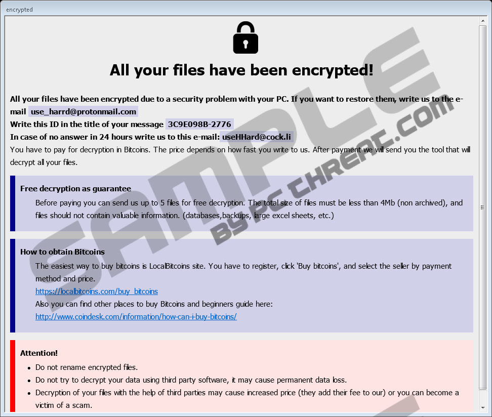 Eight RansomwareThe name of Eight Ransomware does not make any sense. Are there threats named One Ransomware, Two Ransomware, and so on? Does the number mean something to the attacker? It would be truly fascinating to know what goes on through the mind of a cybercriminal when he or she creates a new infection and releases it into the virtual world. Unfortunately, it does not look like we will ever get that opportunity. Of course, the name of the threat is the least of our concerns. This malware is a new variant of the infamous Phobos Ransomware, just like Blend Ransomware and tons of other malicious threats. They all exploit spam emails, downloaders that cannot be trusted, and general system and application vulnerabilities to slither in. Unfortunately, victims of this malware do not know what is going on until all personal files are encrypted. At that point, it is too late to stop the infection. Of course, it is important to remove Eight Ransomware regardless of what has happened inside your operating system. Although Eight Ransomware slithers in and encrypts files silently, this dangerous infection does not remain completely quiet for long. As soon as files are encrypted, the “.id[{ID}].[use_harrd@protonmail.com].eight” extension is added to their names. Next to the encrypted files, you are likely to find a file named “info.txt.” It is safe for you to open this file, but you have to be extremely careful about the information that you are exposed to. The file delivers a message, according to which, you must email use_harrd@protonmail.com or useHHard@cock.li if you want to restore the encrypted files. There is one other file dropped by Eight Ransomware, and this one is called “Info.hta.” It is responsible for launching the “encrypted” window on your screen as soon as files are encrypted and every time you restart your computer. You cannot escape this window until you delete the HTA file, which you can learn how to do manually using the removal guide below. This file opens a window with a longer message, which in general, is just the extended version of the message that is delivered via the “info.txt” file. The ransom note introduced by Eight Ransomware informs that you need a special tool to decrypt files and that you have to pay money for it. The note suggests sending five of the encrypted files to the attackers so that they could decrypt them and prove to you that you can have all files restored as soon as you pay the ransom. The sum and the payment details are not revealed, but you are bound to receive this info if you email the attackers. Is this something you should do? It is not. First of all, if you initiate communication with Eight Ransomware cybercriminals, you could be opening a Pandora’s box. At first, the attackers would incessantly push you to pay the ransom, but once they get what they want, they are unlikely to let go of you. Even if they do not try to terrorize and scam you themselves, they could pass your email address on to other schemers. Furthermore, if you pay the ransom, you are unlikely to receive any tools that would decrypt files. You can try finding a free decryptor – which did not exist at the time of research – but you should definitely not rely on cybercriminals. In the best-case scenario, you can replace the corrupted files with backups. We cannot know where the launcher of Eight Ransomware is on your computer, which is why we cannot guarantee that you will be able to delete this malware manually. Of course, if you can detect and delete this file, you should be able to follow the instructions below that show how to eliminate the remaining components. The alternative to manual removal is automated removal. In this case, you need a legitimate anti-malware program that can thoroughly scan your operating system and then erase all active infections. Hopefully, there are no other threats, but if ransomware has slithered in, it is hard to say what other silent threats could be present. The full elimination of malware is not the only reason to implement anti-malware software. Once you have Eight Ransomware deleted, this software can continue protecting you, and that is even more important than you might think right now. Eight Ransomware Removal