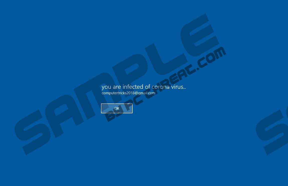ComputerDestroyer RansomwareComputerDestroyer Ransomware is a threat that shows warnings that say you have been infected with corona virus. These messages might also claim that the malicious application have encrypted all files on the infected device. In exchange for a decryption code that could restore all files, hackers ask to contact them and if you do, we believe they would ask to pay ransom. However, our researchers who tested a sample of this threat say that it does not encrypt any files. Thus, users who put up with the hackers’ demands might end up being scammed. Therefore, instead of doing what the warning says, we advise deleting ComputerDestroyer Ransomware. The process might not be easy, but we can guide you through it with the instructions displayed at the end of this article. Further in this text we explain how the malicious application works and other important details. The first thing users should know is how ComputerDestroyer Ransomware could be distributed. Our researchers say that such threats can enter a system if a user opens unreliable files obtained from the Internet or clicks on suspicious advertisements and links. For example, file carrying the malware could be encountered on unreliable file-sharing websites. Consequently, it is advisable to download files only from legitimate websites and stay away from sites that could be malicious. Moreover, the ComputerDestroyer Ransomware could be spread via email. For instance, the messages carrying it could claim that it is an important document and you must open it immediately. Also, malicious emails could urge you to click on links that could initiate the malicious application’s launcher’s downloading process. This is why, it is vital to make sure that emails you receive come from reliable sources and do not raise suspicion. Scaring you into opening a file or a link should without a doubt seem suspicious. If you are not entirely sure that your received or downloaded file is harmless, you should scan it with a reputable antimalware tool that could warn you about malicious data. The first thing ComputerDestroyer Ransomware should do after entering a system is log out its user and display a blue screen with a message saying: “you are infected of corona virus..” Below the message users should also see the malicious application’s creators email address and the OK button. Our researchers say that if you click the OK button, the threat should allow you to enter your password and log onto your device again. Unfortunately, soon after you do so, the malware should lock your screen by displaying a borderless black window and a pop-up window on top of it. The text on the threat’s pop-up window should say that all your files got encrypted by corona virus. Plus, the warning ought to say that you can restore them only with the hacker’s decryption code that can be obtained if you contact them via email. Since most of malicious applications like ComputerDestroyer Ransomware are created for money extortion, we suspect that users who contact the malware’s developers would be asked to pay ransom. In which case, users who trust the hackers would get scammed because, as said earlier, the malware does not encrypt any files, which means you do not need any decryption code to restore them. Of course, the hackers’ code might help you unlock your screen faster, but we do not think it is worth paying money to them. Our researchers say that users who want to unlock their screens should erase ComputerDestroyer Ransomware from their computers. It might sound like an impossible task if your screen is locked, but if you restart your system in Safe Mode with Networking, you should regain the control of your computer and be able to erase the malicious application. To eliminate ComputerDestroyer Ransomware we advise deleting all recently downloaded files that you believe could have infected your device with this screen locker. Afterward, we recommend scanning the system with a reliable antimalware tool to makes sure that the malware is truly gone. If you need more consistent instructions, you should follow the instructions available below. Restart your system in Safe Mode with NetworkingWindows 8/Windows 10