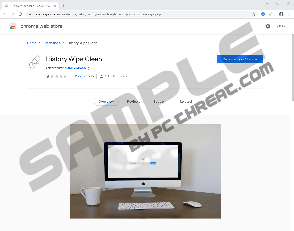 History Wipe CleanHave you ever wanted to delete every trace of your web browsing history? For whatever reason, you must have wanted a piece of your privacy back, haven’t you? Maybe you figured that History Wipe Clean could help you with that? Or maybe this application simply popped up on your browser out of nowhere one day? Whichever it might be, we would like to suggest removing History Wipe Clean right now. This application is a potentially unwanted program, and it usually enters target systems accidentally when users are not careful about the programs they download and install. As far as the configurations are concerned, this application is a Chrome extension. So, it works only on the Chrome browser. However, keeping in mind that potentially unwanted programs often come bundled with freeware, it doesn’t mean that you cannot be affected by whatever it is related to just because you don’t use the Chrome browser. The bottom line here is that you have to be attentive when you browse the sites that are full of third-party advertisements because you can never know when you might be exposed to such things as History Wipe Clean. For instance, a redirect might try to add it to your browser, and you click the bold button just because, just to close the annoying window, History Wipe Clean would be added to your browser immediately. Here, we cannot say that History Wipe Clean enters your system without your permission. Although the application could be distributed via freeware downloads, pop-ups, and redirects, it can still be added to the browser directly via the Chrome Web Store. Hence, it doesn’t try to hide its presence, and it tells you upfront the modifications it performs on your browser. The modifications are as follow: